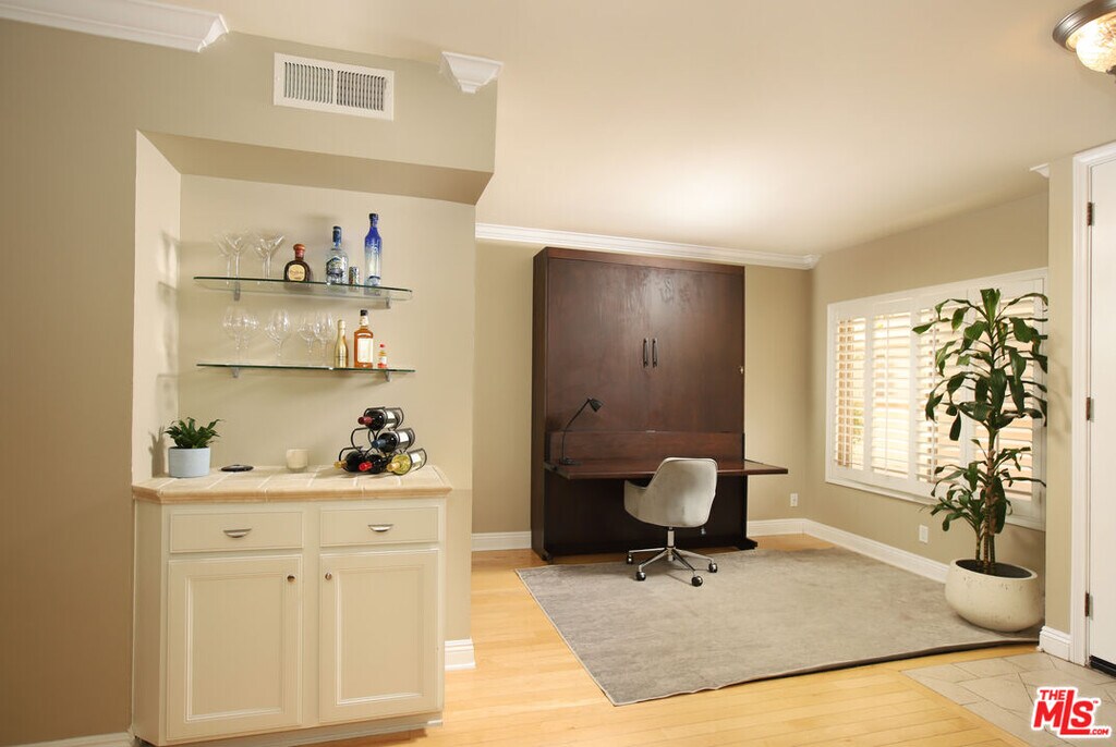 Chic & Spacious Brentwood Condo Just Moments from San Vicente. Tucked away in one of Brentwood's most coveted pockets, this beautifully updated 1 bed + 1.5 bath condo with a versatile den perfectly blends style, comfort, and location. In close proximity to premier dining, shopping, cafe's, and grocery stores, this home places you at the center of it all yet feels like a peaceful escape. Inside, you'll find a bright, open floor plan with newly updated quartz countertops, stainless steel appliances, and a cozy fireplace that anchors the inviting living space. The spacious primary suite features dual walk-in closets, while the private balcony offers a perfect spot to unwind. The den off the entry is a true bonus thoughtfully designed with a built-in desk for working from home that doubles as a Murphy bed for hosting guests with ease. With in-unit laundry, central A/C, secure parking, and tasteful modern finishes throughout, this is Brentwood living at its finest! MLS# 25617803