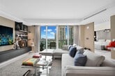Experience the pinnacle of luxury living in this stunning penthouse at Murano at Portofino, located in the exclusive South of Fifth neighborhood. Surrounded by white-sand beaches, turquoise waters, and lush parks, this serene enclave offers top dining, cozy cafés, and premier social clubs. Fully renovated with high-end finishes, the residence features a Nolte European kitchen, smart home technology, custom carpentry, and electric shades. Enjoy breathtaking views of the Intracoastal, Miami skyline, marina, and ocean. Amenities include a beach club, two pools, tennis courts, and a fitness center (one pool and one tennis court currently under renovation)