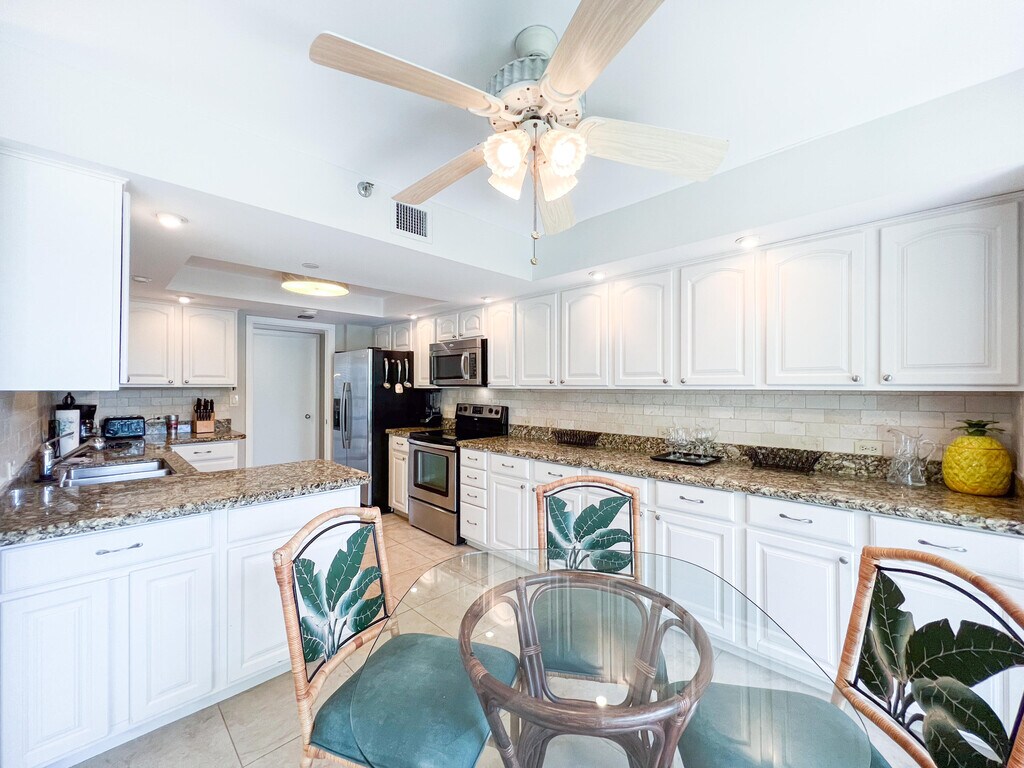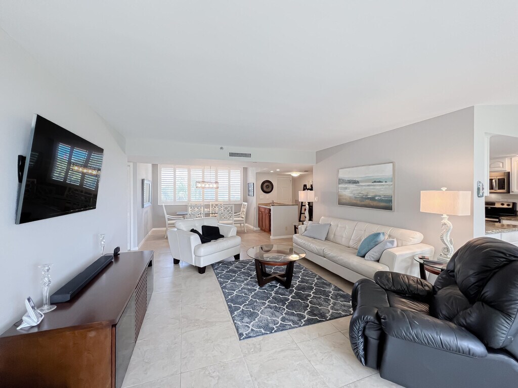 Available August-December 2025 and April 2026. Not Available for Jan-March 2026/ Modern, updated and furnished townhome available for rent in Jupiter Harbour overlooking marina. Updated kitchen with white shaker cabinets and white quartz countertops. New appliances and separate pantry. Laundry and additional refrigerator in garage. Master suite features first floor king bed with attached bath with double sinks, separate shower and tub and walk0in closet. First floor guest room with full bed and separate bathroom. Second floor has second living area, full bath and guest room with king bed.