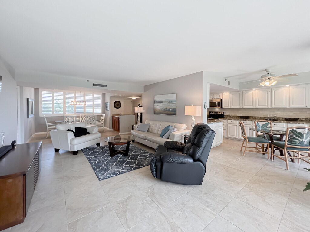 Jupiter Harbour in high demand . This 3 Bedrooms 2 Baths has Intracoastal views from Spacious 7.8 x 33 screened terrace adding 230 sq ft , plus continuous water activiities of paddleboarders, kayacks, small boats up to large yachts, plus entertaining small cruise boats passing by. Looking for a nice dinner out? Choices are numerous , some walking distance as 1000NORTH on site or call Zeke and he'll come to your building to pick you up.