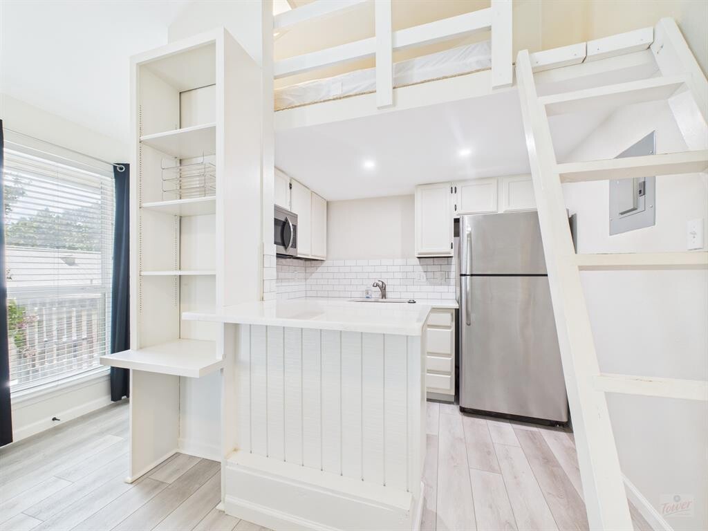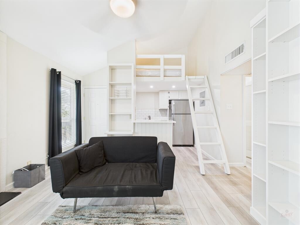 Large Studio with loft. Water, Wastewater, Trash and Recycling included in rent.