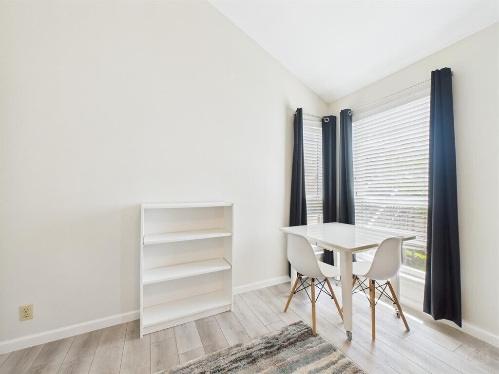 Renovated condo with loft in nice location in West campus. Luxury vinyl flooring throughout, modern kitchen with quartz countertops and stainless steel appliances, and a custom Murphy bed with built-in shelving. Theres a large closet for storage and a loft, accessible by ladder, that works as an extra sleeping or living space. Three large windows bring in plenty of natural light, keeping the space open and inviting. Comes furnished with beds, bookshelf, and dining table/chairs. Water, wastewater, trash, and parking included with rent. Community laundry room and well maintained pool. Available for the 2026-2027 school year!
