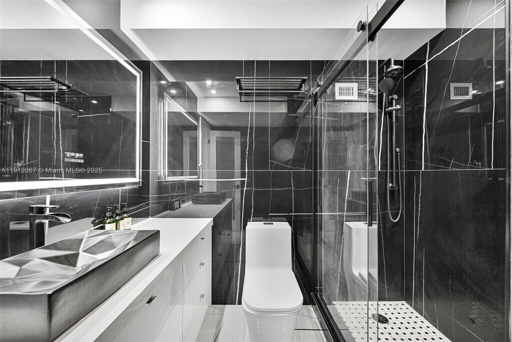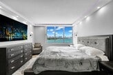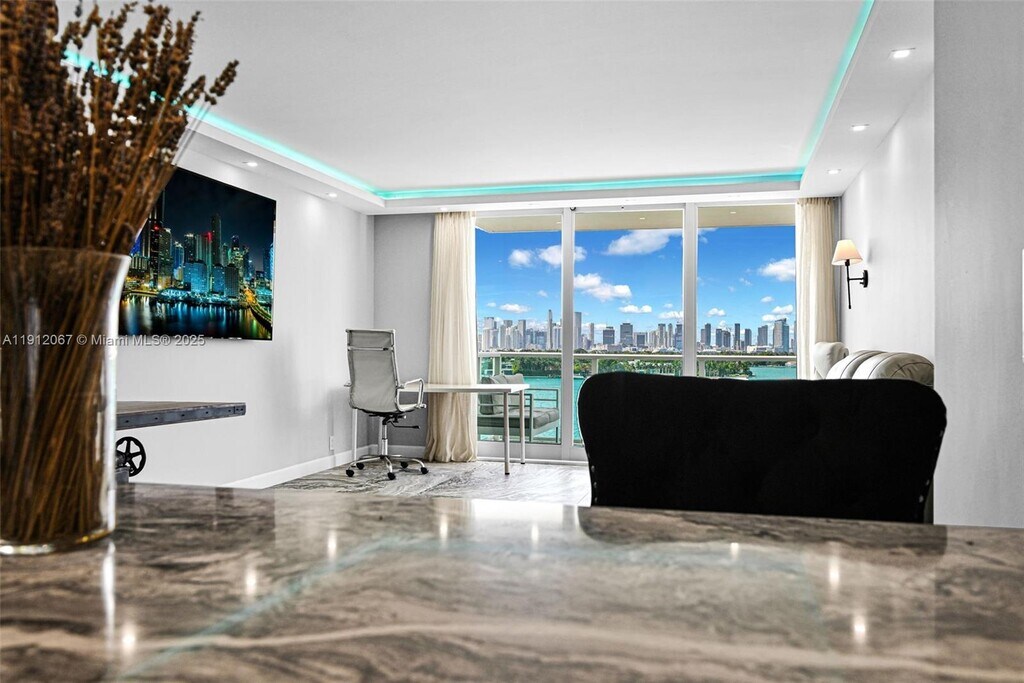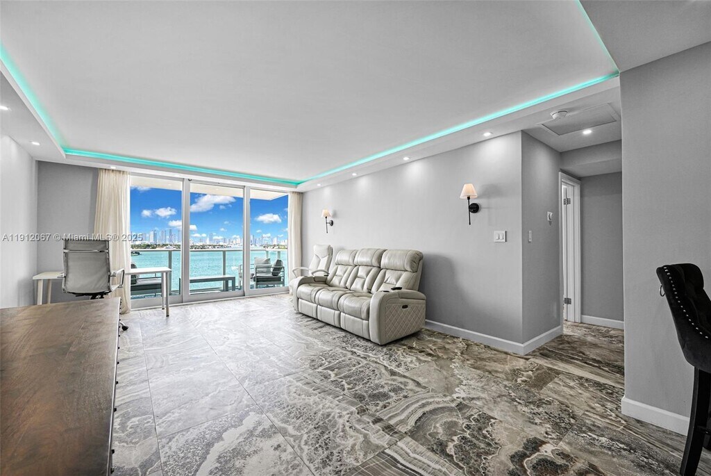 Experience Miami Beach living at its best in this beautifully renovated studio on sought-after West Avenue. Bright and spacious, it features a contemporary open layout with floor-to-ceiling impact windows framing stunning views of Biscayne Bay and the Miami skyline. The interior offers gray-toned flooring, recessed lighting, and a custom kitchen with quartz countertops, sleek white cabinetry, breakfast bar, and new stainless-steel appliances. The bathroom includes a glass-enclosed walk-in shower, modern vanity, and matte-black fixtures. Enjoy your morning coffee or evening cocktail on the private balcony overlooking the bay — a perfect blend of comfort and sophistication. Located in a full-service building near Lincoln Road, the beach, and top dining and entertainment