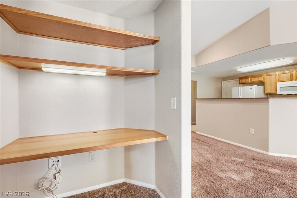 Welcome to this 2-bedroom, 2-bath, 2 car garage, Townhome/Condo in SouthWest Las Vegas, NV, located within a Gated community. This home features a large primary bedroom with a walk-in closet and a primary bath offering dual sinks and a shower/tub combo; the second bedroom includes a small walk-in closet. Interior highlights include plush carpeting throughout, ceiling fans, built-in hallway shelving, granite kitchen countertops, and all kitchen appliances. A separate laundry room includes a washer and dryer. Step outside to a balcony patio, and enjoy Community Amenities such as a Pool & Hottub, BBQ picnic area, and secure 2-car attached garage. Trash, Sewer and Tenant Portal Fee are included in rent!