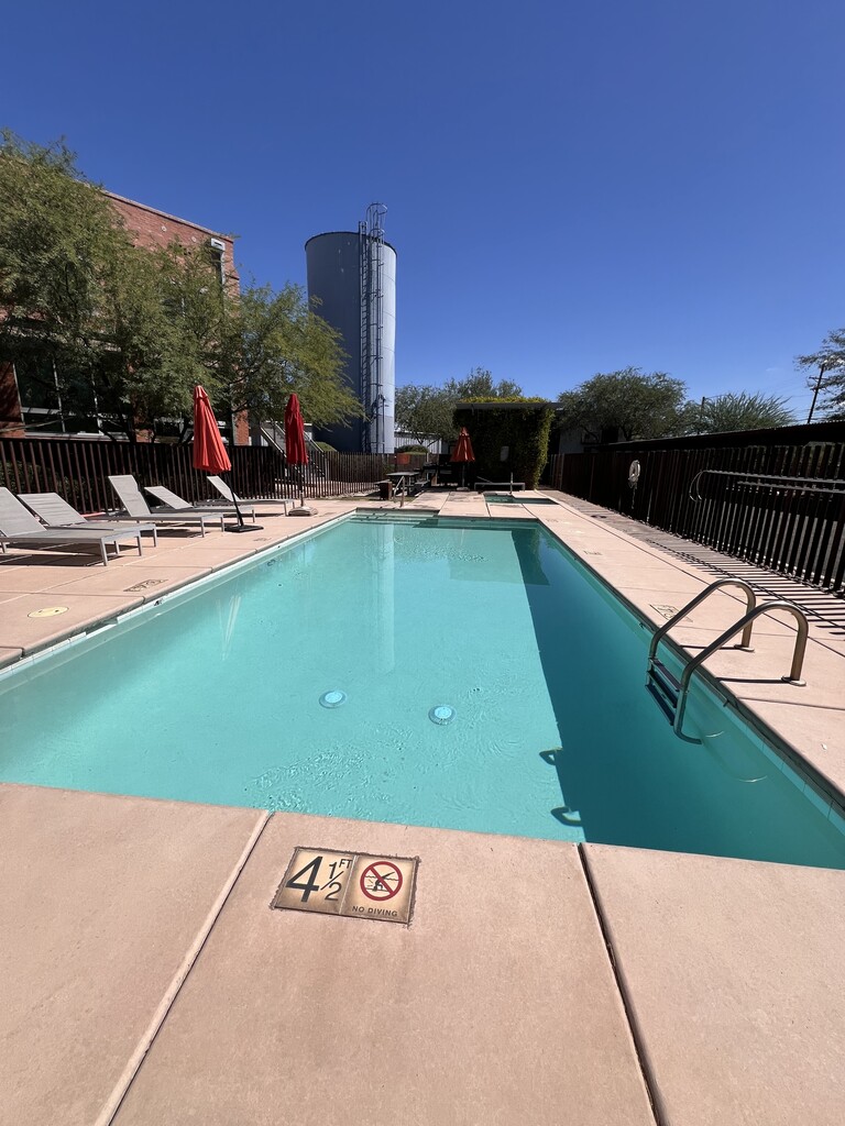 Wonderful studio unit on the 2nd floor of Tucson's Ice House... wood floors, exposed brick walls, soaring ceilings. Gated community. Pool. Small patio area. Laundry room with Washer/Dryer. Perfect for minimalist small footprint living! Close to downtown, entertainment, restaurants, transit. $900 a month/$1,050 deposit. 12month lease.