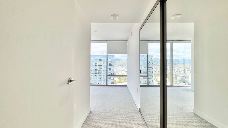 Howard Hughes development and new preferred lifestyle, conveniently located upstairs of Whole Foods, private walk way in parking garage. Unit includes partial ocean view, city, and mountain views. Spacious and largest 1 bedroom floor plan with large walk-in closet and double sink bathroom. Floor to ceiling vertical blinds, top of line appliances, and washer/dryer in unit. Resort like amenities includes BBQ, movie theater, sky terrance, club house, concierge, gym, meeting room, 2 pools, recreation area, sauna, security guard, trash chute. 1 assigned parking. No pets, no smoking. $25 application fee. Tenant responsible for monthly electricity and internet/cable fees.