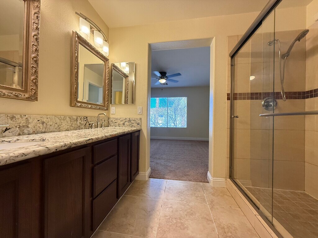 Beautiful home with 3 bedrooms/3 baths, plus den. This home features a great open floor plan, living room with vaulted ceilings and plenty of windows that allow for a bright, spacious and comfortable feel to this home, kitchen with breakfast bar, granite countertops, stainless steel appliances and pantry, spacious primary bedroom with walk in closet and private bathroom with dual sinks, ceiling fans throughout. The home is conveniently located near school, restaurants, shopping, and easy access to freeways. The rent includes $48 sewer/trash. Will consider small pets.