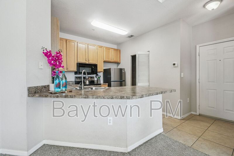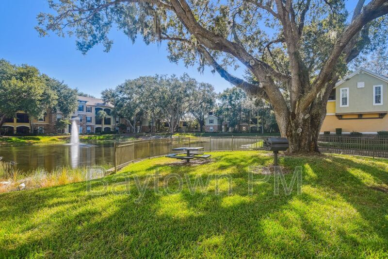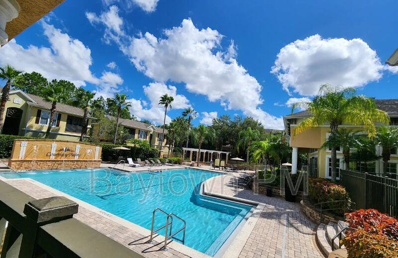 Live the ultimate resort-style lifestyle in this stunning 1-bedroom, 1-bath condo in the highly desirable Courtney Palms community! This top-floor gem boasts soaring vaulted ceilings, ample closet space, an in-unit washer and dryer, a relaxing garden tub, and a private balcony with serene lakeside views perfect for unwinding after a long day. The community is packed with incredible amenities, including a sparkling resort-style pool and spa with sun deck, a cutting-edge fitness center, an executive business center, a stylish clubhouse, a gazebo with propane grills, indoor basketball and racquetball courts, scenic walking trails, a dog park, and picnic areas with charcoal grills. Just minutes from Downtown Tampa, major highways, shopping, dining, and entertainment, this condo truly has it all. Please note: this is a third-floor unit with no elevator.