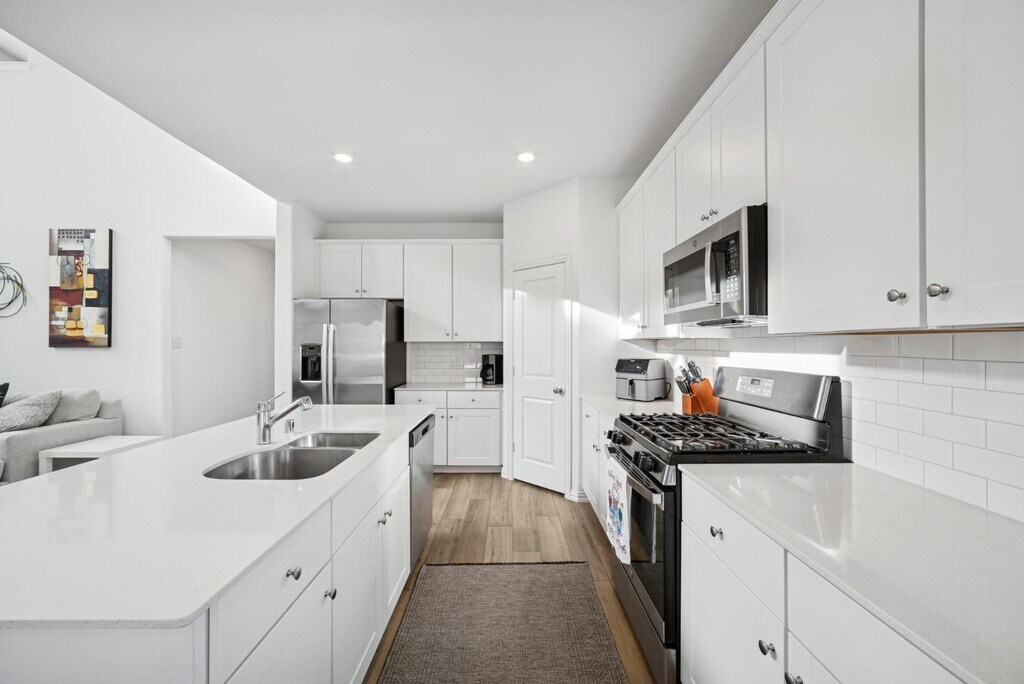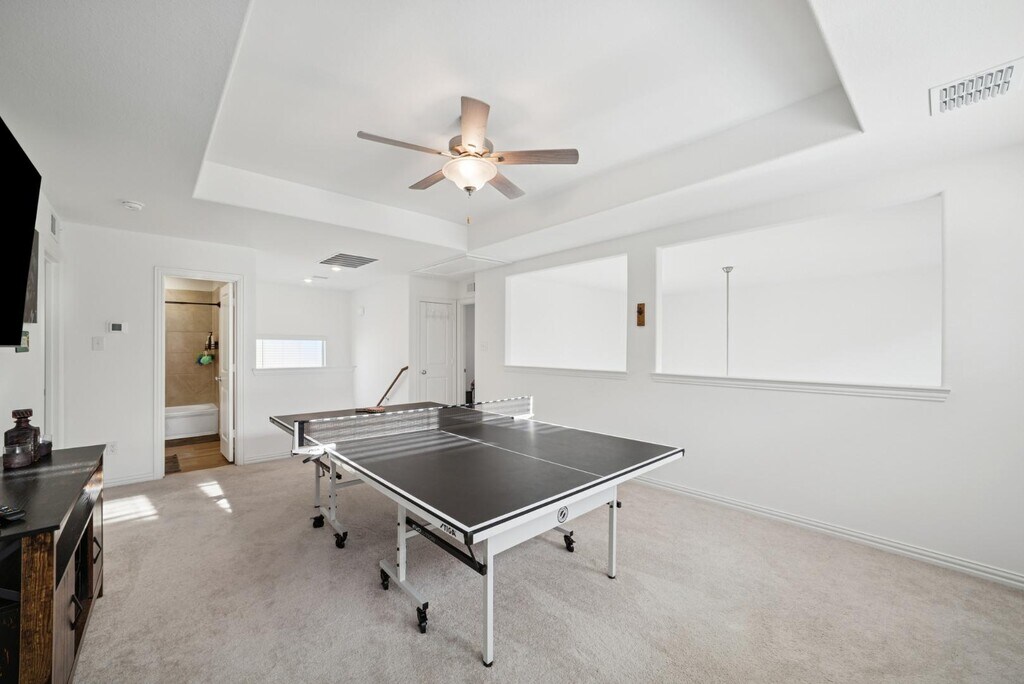 Available for immediate move-in both furnished & unfurnished in the sought-after Northpointe community with a community pool, playgrounds, parks & more! This recently built (2023) 3 bed (+ study), 2.5 bath, 2277 sqft home is perfect for anyone! As you walk in the door, the wonderful Study greets with you stunning French doors, perfect for work-from-home days or for kids to do homework. The split Primary Bedroom offers a relaxing sanctuary separate from the other bedrooms and complete with an ensuite bathroom boasting a dual sink vanity, walk-in closet, and a walk-in shower. Entertain in the open Kitchen highlighted by a large island with a breakfast bar, a gas range, pantry, and beautiful countertops. Unwind in the spacious Living Room graced by natural light from its wall of windows or head upstairs to the spacious Game Room with ample space to offer. Downstairs is also complete with a half bath perfect for guests, a utility room and a two-car garage, while upstairs you'll also find 2 additional generously-sized bedrooms and a full bathroom with a shower and tub combo. Enjoy the outdoors on the private patio in the fenced backyard! Pets are allowed on a case-by-case basis. 6+ month rentals both furnished and unfurnished are available. Just 5-10 min to grocery stores, pharmacies, schools & 15 min to Eagle Mountain Lake.