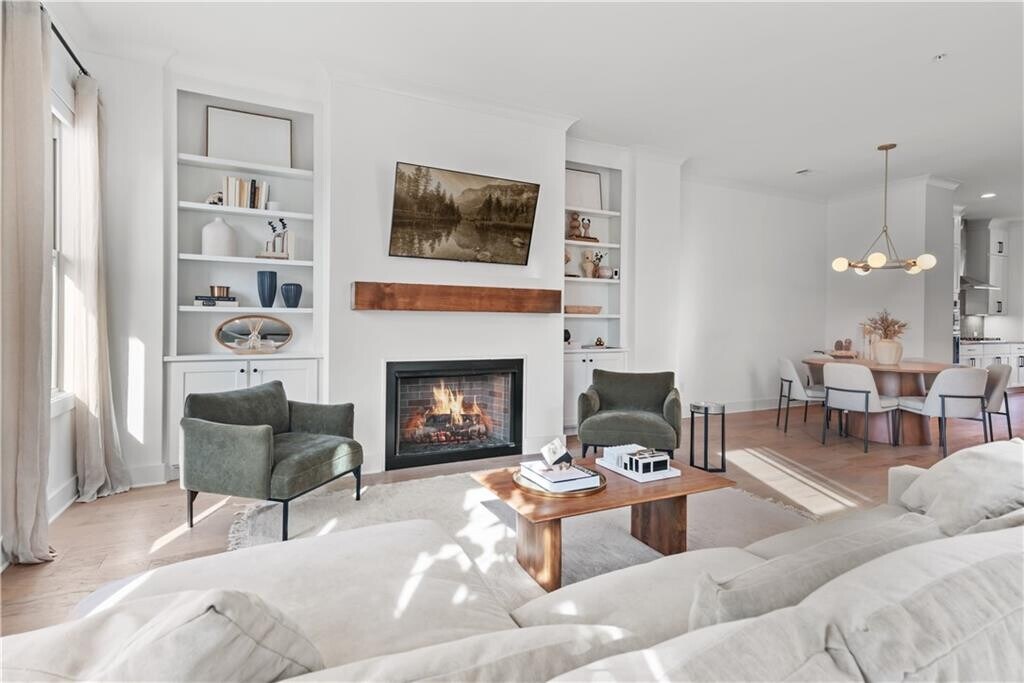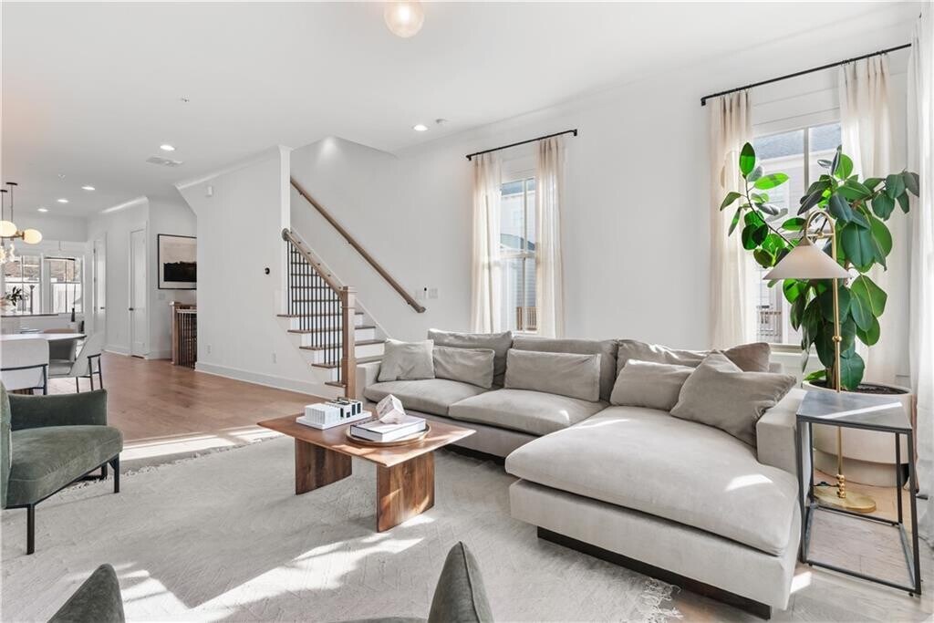 Elizabeth NavarraWalk to downtown Woodstock from this exquisitely appointed 3BR/3.5BA townhome located in the coveted South on Main neighborhood. With stunning hardwoods throughout and soaring 10 ft ceilings, this light-filled end unit will exceed your expectations. On the first floor you will find an ensuite bedroom that may be used as living space or office. Prepare to be stunned when you enter the gourmet kitchen with enormous island, quartz countertops, gas cooktop with hood vent, oven/microwave and breakfast area. The kitchen opens into an open concept dining room. Flooded with natural light, the living room boasts enormous windows equipped with remote controlled blinds, a gas fireplace with exposed beam mantel and built-in bookshelves. A deck by the kitchen provides a space for grilling and entertaining. Upstairs, the enormous primary bedroom is a sanctuary equipped with fireplace, custom cabinets and a balcony for enjoying South on Main's iconic sunset views. The primary bath features a spa-like shower, double vanities with quartz countertops and a custom walk-in closet for ample storage. A third bedroom with luxurious full bath has large windows and closet. The laundry room comes equipped with washer/dryer and storage cabinets. Permanent stairs lead to gigantic attic for all of your storage needs. The JW Collection's award winning amenities will keep you entertained! Enjoy the community pool, fitness center, playground, fire pit, grills/picnic area, amphitheater and parks. The neighborhood is attached to the Noonday Creek Trail and features sidewalks throughout. South on Main is conveniently located for walking to downtown Woodstock and for enjoying easy access to I-575/ I-75. Welcome home!