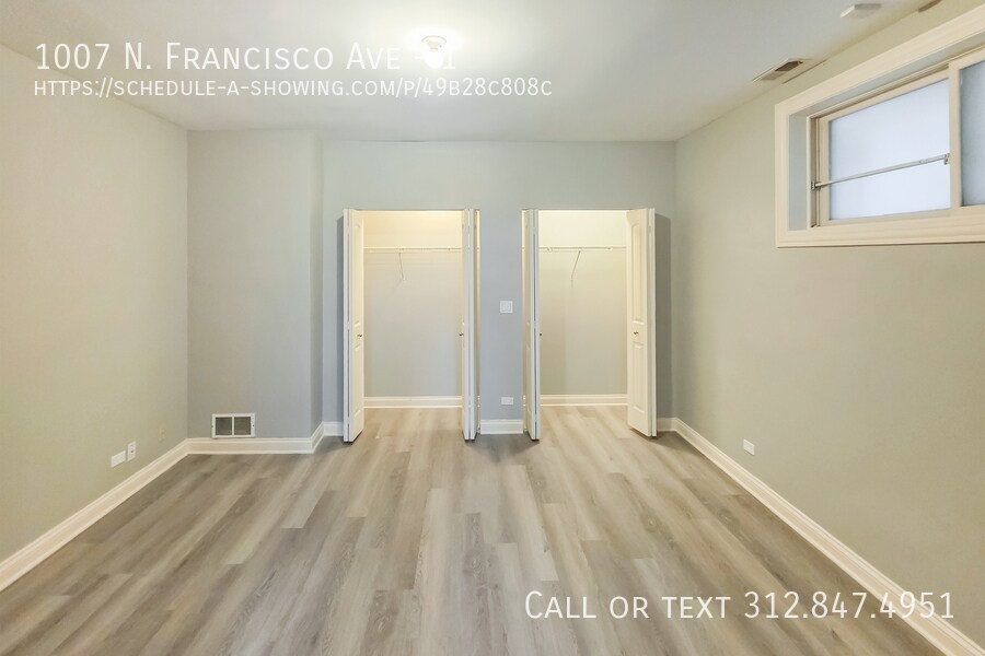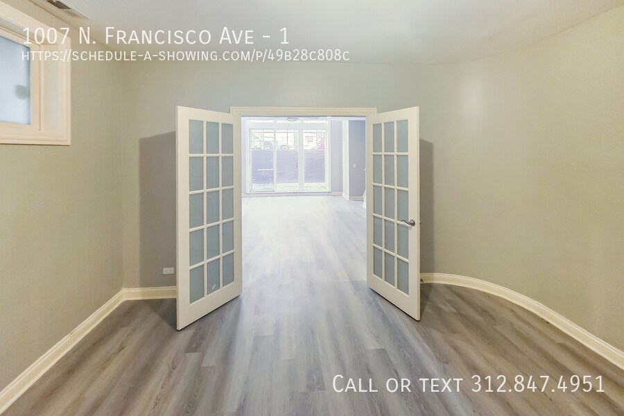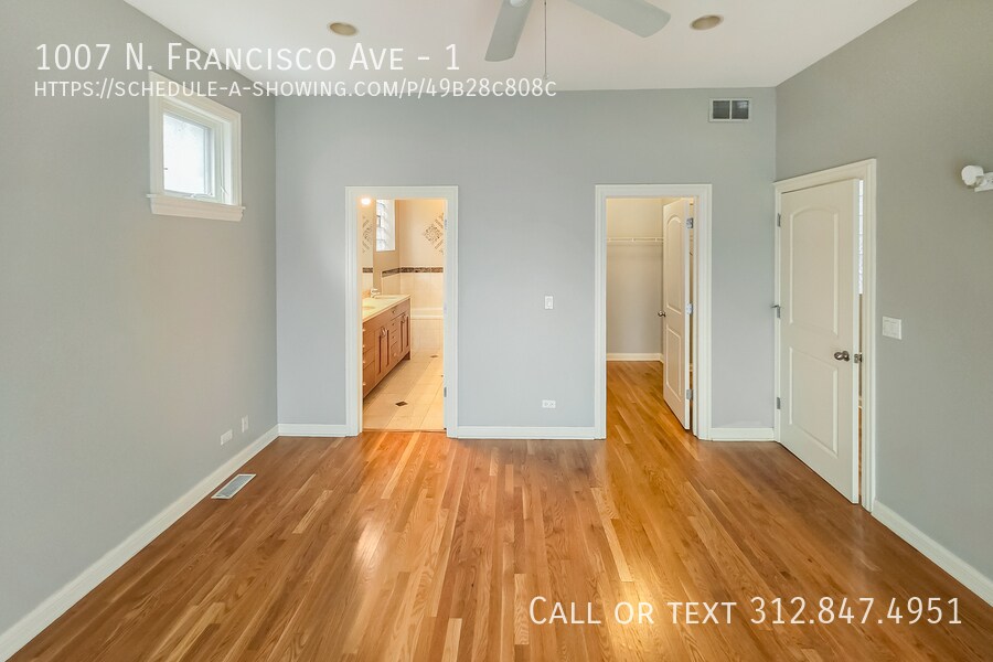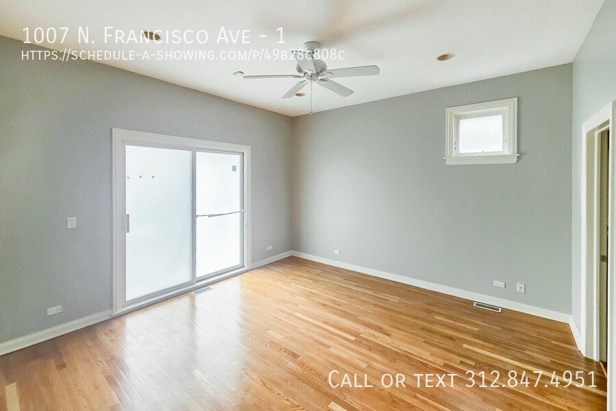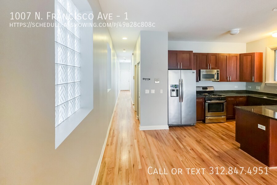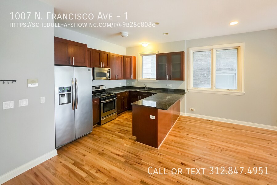 3 Bedroom/2.5 Bathroom Newly Renovated Duplex in West Town Property Highlights: Size & Layout: 2,800 sq ft lower-level duplex with 3 spacious bedrooms and 2.5 bathrooms Location: 1007 N. Francisco Ave, West Town - one of Chicago's most desirable neighborhoods Rent: $3,599/month | Available October 1st, 2025 Interior Features: Brand new construction with hardwood floors throughout High ceilings with wall-to-ceiling windows for abundant natural light Gourmet kitchen with granite countertops and stainless steel appliances (stove, oven, refrigerator, dishwasher) Cozy fireplace for ambiance Central air and heat for year-round comfort In-unit washer and dryer Luxurious master bathroom with jacuzzi tub Large indoor storage area (ideal for bikes and more) Outdoor Spaces: Two private decks (front and back) Fenced backyard for privacy and outdoor enjoyment Parking available on-site Additional Benefits: Pets welcome Professionally managed with in-house maintenance and construction teams No outsourcing for repairs or maintenance Lease Details: 1-year lease term $3,599 security deposit $50 application fee per person (background and credit check) Tenants cover gas and electric utilities First month's rent and deposit due upon approval
