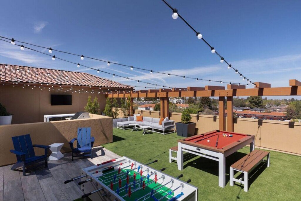Welcome to Murphy Station, Sunnyvale’s newest rental community featuring cutting-edge design and amenities. Located in the heart of Silicon Valley, this apartment offers proximity to all the action, with Apple Park less than a mile away. Enjoy retail shopping next door, fine dining nearby, and an endless array of parks and trails. VTA bus transportation is conveniently on site, making discoveries endless. This apartment boasts a resort-inspired luxury pool, a rooftop skyline terrace with a kitchen and fireplace for entertainment, a business center with workstations, outdoor lounge seating areas, and a state-of-the-art fitness center. Multiple grilling stations, an outdoor fireplace/firepit, air conditioning, and a smart TV are also included. Free parking is available for residents. A pack-n-play can be provided for an additional fee of $150, subject to location and availability. Situated in the vibrant heart of Silicon Valley, Murphy Station is surrounded by local attractions such as Golfland USA, Las Palmas Park, Sunnyvale Heritage Park Museum, and the Sunnyvale Public Library. Explore Baylands Park, Murphy Avenue's vibrant downtown area, The Lace Museum, Levi's Stadium, California's Great America, and the Winchester Mystery House, all within easy reach. Smoking is prohibited in the unit and on the balcony, with a $200 fine plus cleaning costs for violations. Quiet hours are observed from 9 pm to 8 am, with a $200 fine for violations. NoiseWare technology may be used to ensure guest comfort and security, and tampering with the device will result in a $200 fine. No parties or events are allowed, with fines ranging from $200 to $500 for violations. Pets are not allowed. A State Identification Card or Driver's License copy will be requested upon booking, and the traveler must be at least 21 years old to make a reservation. Streaming services are available with guests' own accounts, and customer support is available 24/7. [SI]