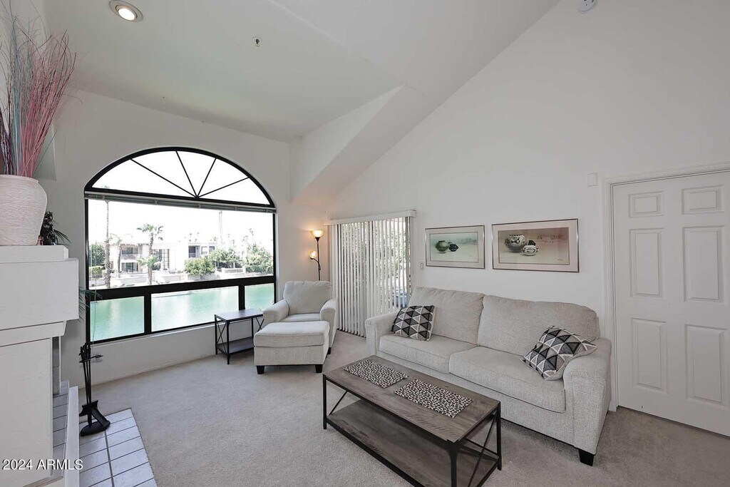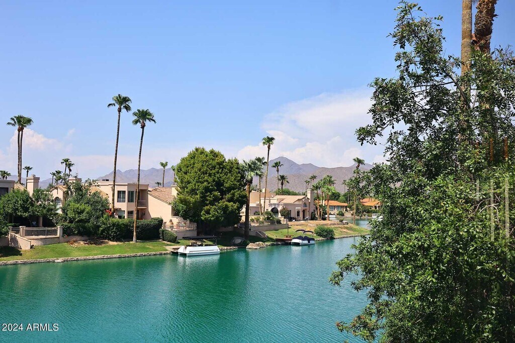 This amazing fully furnished condo in the gated,Scottsdale Bay Club is available for immediate occupancy. You have unobstructed views of McDowell Mountains and Lake Serano to enjoy from your living room and patio deck. Primary suite is good sized with garden tub and great shower! Kitchen has granite counters and stainless appliances. Open great room has a sleeper sofa and cozy fireplace. Bedroom #2 has twin beds and exit to balcony deck. Sit on the deck and enjoy a glass of wine and watch the boats. Community features two pools,spas,clubhouse with workout facility. Perfect location within the heart of Scottsdale Ranch with parks,bike/jogging/walking paths,etc. The Bay Club is a well maintained property with lush landscaping and easy walking distance to some stores and restaurants