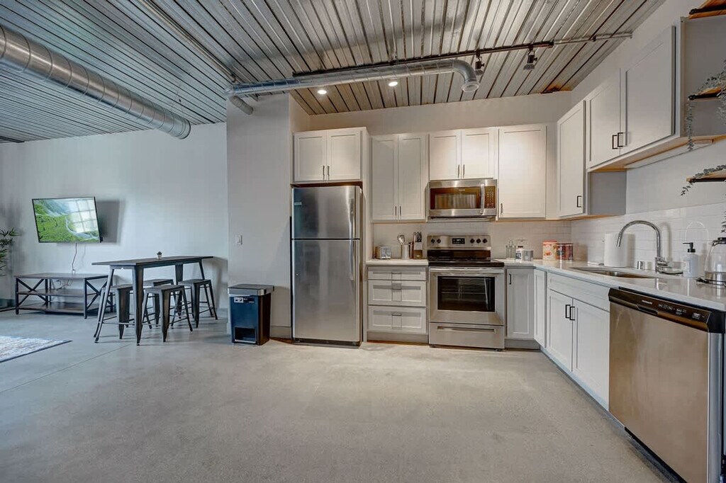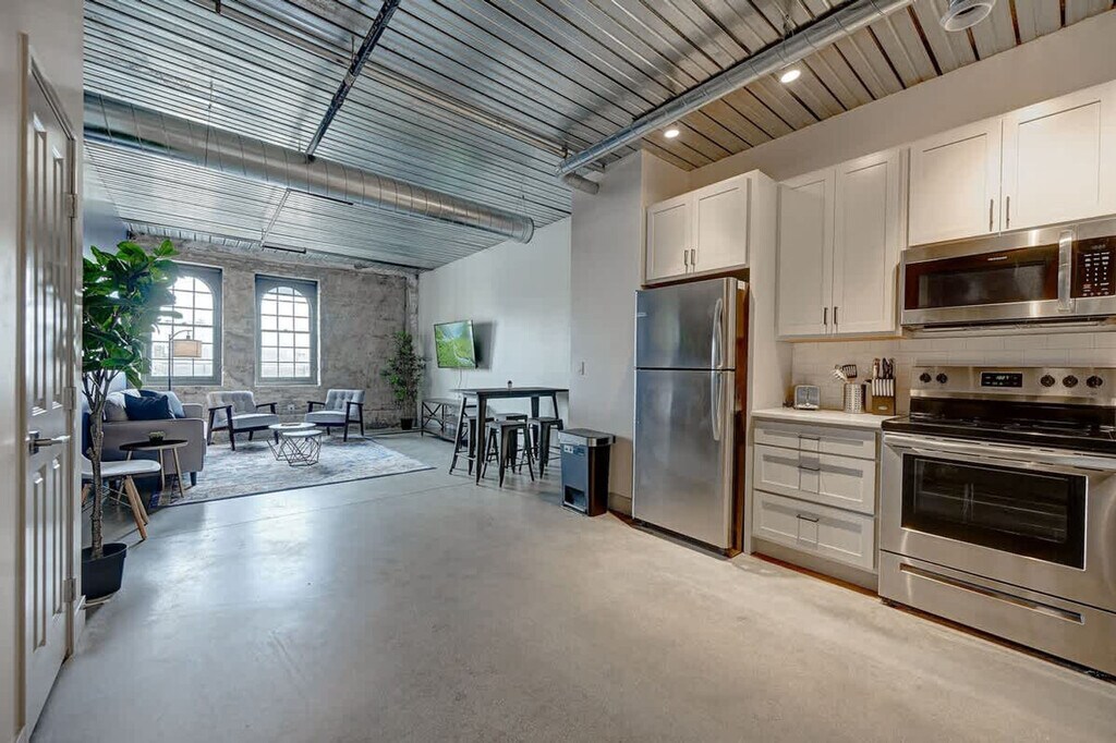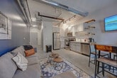 Relax and unwind in this stylish 1-bedroom apartment located in a major historical building in the heart of Central Downtown Milwaukee. This vibrant area is home to numerous award-winning restaurants, shops, historic landmarks, and attractions. From this prime location, exploring Milwaukee and the surrounding region is easy and convenient. And when you're ready to wind down, simply retreat to the comfortable apartment to relax. Come relax in this 1-bedroom, 1-bathroom apartment. The living space features an innovative open-concept design that blends the living and dining areas with the kitchen, creating a modern and sleek living experience. The living room is ideal for relaxing and enjoying the company of friends and family while watching a good movie or a show. The apartment features a fully equipped kitchen where you can easily prepare your favorite meals. A cozy dining table is situated between the kitchen and the living room sofa, perfect for enjoying a delicious meal while having the TV on. The bedroom features two queen-size beds designed to provide you with the perfect resting experience. Besides the hotel-like comfort, the bedroom is furnished to meet all your business needs. The inviting full bathroom is completely private and stocked with all essential toiletries. One parking space is included at The Brewery Parking Structure a few blocks away. If you need additional parking, it is $20 per day, but may raise if there are events going on. Sofa and queen floor mattress can also be used for extra guests. Pets are allowed depending on size or if they are service animals. An additional cleaning fee is required per pet: 1-7 nights is $25 per night, 8-29 nights is $200, and 30+ nights is $300. There is a 2 pet maximum and only cats and dogs are allowed. If you are found to have brought pets without prior notification, there will be a $500 fee. Welcome to the Historic Pabst Brewery District, a vibrant and historic neighborhood in Milwaukee, Wisconsin. This area was once home to the famous Pabst Brewing Company, which operated from 1844 until 1996, and its legacy is still evident in the architecture and culture of the area. As you explore the neighborhood, you'll notice many of the original Pabst buildings have been preserved and repurposed for modern use, while still retaining their historic charm. The Pabst Brewery Complex is now home to a variety of businesses, including a restaurant, a craft brewery, a coffee roastery, and a boutique hotel. If you're looking for outdoor activities, there are several parks and green spaces nearby, including the nearby Zilber Park, which offers a variety of recreational activities. The Milwaukee Riverwalk is also a popular destination for scenic walks along the riverfront. For those who love exploring local culture, the Historic Pabst Brewery District is a hub for art and entertainment. The Milwaukee Art Museum, located just a short drive away, is home to a world-renowned collection of art from around the world. When it comes to dining, the neighborhood has plenty of options to suit any taste. Quiet hours are between 10pm and 8am every day. If there are noise complaints or any violation of this rule, it may result in cancellation of booking and removal from property without refund. There is a strict no-party policy. No parties or events are allowed. If there is a party of any kind, the police will be called and everyone will be removed from the property with no refunds. Smoking is prohibited without exception on this property. If any signs of smoking are found in the unit or on the premises, a fine of $500 will be imposed. You may be charged extra for cleaning if the property is left in a state that necessitates additional cleaning. Lost or unreturned keys are $80 for key replacements and $150 for key fob replacements. Depending on our cleaning schedule, we may be able to accommodate early check-in or check-out at a fee of $25 per hour. Otherwise, for delayed checkout, there will be a $500 late check-out fee. If a lockbox is provided, it must be kept locked at all times. Some stays have auto-locking doors so keep the keys on you. Noise monitors are installed in the unit to measure noise levels in decibels. If tampered with, there will be a fee. The bedroom is furnished to meet all your business needs, featuring an office desk with a 21.5" monitor and chair. High-speed fiber Wi-Fi is available to ensure a seamless work-from-home experience. [SI]