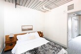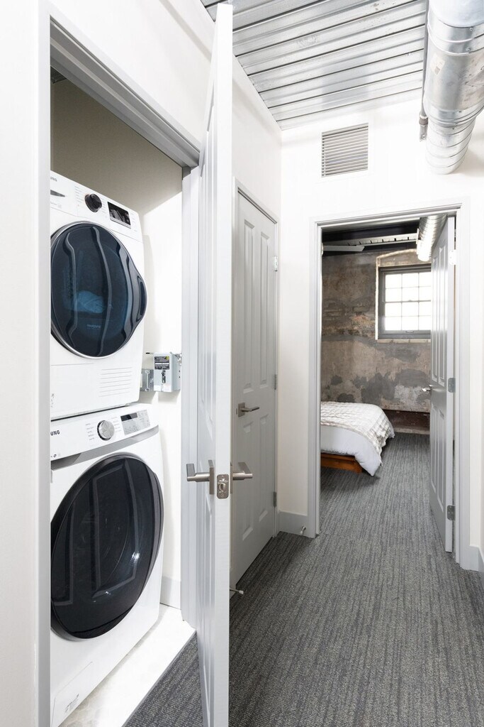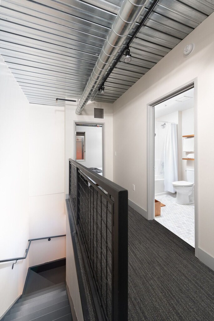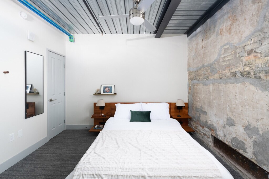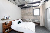 Feel at home in this 2-bedroom apartment situated in one of Milwaukee's most historic buildings, showcasing architectural features such as original Cream City brick, exposed beams, arched windows, and city skyline views. Located on the first floor, this private apartment spans two stories via an interior staircase. This apartment sleeps four with a queen bed in each of the two bedrooms. The compact living area offers a full-size sectional and flexible seating options. The drop-leaf dining table seats up to 5 and doubles as a workspace. Amenities include in-unit laundry, a smart TV with Chromecast, a fitness center, a theater, work/study booths, and a game lounge with darts, pool, and bags. This apartment includes one free parking space in a secured garage one block away in the Brewery Parking Structure. Additional parking is available in the same garage and costs $25/day (rates may increase during events). Located in the heart of the historic brewery district and connected to the iconic Pabst sign spanning Juneau Ave, this apartment is a 5-minute walk to Fiserv Forum down cobblestone streets and a 5-minute drive to Downtown, Third Ward, and Marquette University. No smoking of any kind is allowed anywhere on the premises, including outdoor spaces, and a minimum fine of $500 will be assessed, with additional fees for remediation potentially applying. Quiet time is after 10pm. Guests must cover the cost to replace unreturned access devices such as keys, key cards, fobs, or parking passes. The garage has a vertical clearance of 7'2", which is enough for most consumer vehicles but may not accommodate larger vehicles such as RVs or full-size vans. Includes self check-in, high-speed Wi-Fi, a dedicated workspace, an iron, and a Keurig. [SI]