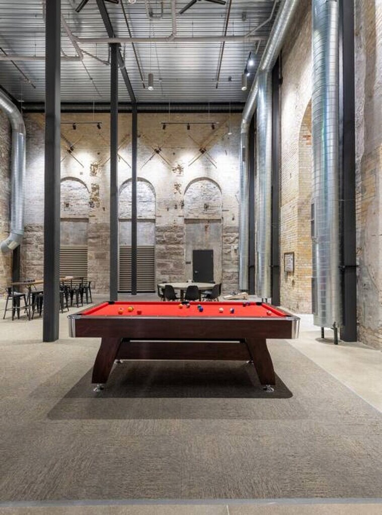 Feel at home in this apartment situated in one of Milwaukee's most historic buildings with architectural features that include original Cream City brick, exposed beams, arched windows, and city skyline views. This apartment comfortably sleeps four. This apartment features in-unit laundry, a smart TV with Chromecast, a fitness center, a theater, work/study booths, and a game lounge with darts, pool, and cornhole. The sofa bed conveniently pulls out into a queen-size bed, and extra pillows and sheets are stocked in the closet. Includes self check-in, high-speed Wi-Fi, a dedicated workspace, an iron, and a Keurig. This apartment includes one free parking space in a secured garage one block away (the Brewery Parking Structure). Additional parking is available in the same garage and costs ~$25/day (and increases during events). Metered street parking is available throughout the neighborhood. The garage has a vertical clearance of 7'2", which is enough for most consumer vehicles but may not accommodate larger vehicles such as RVs or full-size vans. Located in the heart of the historic brewery district and connected to the iconic Pabst sign spanning Juneau Ave, this apartment is a 5-minute walk to Fiserv Forum down cobblestone streets and a 5-minute drive to Downtown, Third Ward, and Marquette University. There is a zero-tolerance policy for parties or gatherings. No smoking of any kind is allowed anywhere on the premises, including outdoor spaces, and a $500 minimum fine will be assessed, with additional fees for remediation potentially applying. Quiet time is after 10 pm. Guests must cover the cost to replace unreturned access devices such as keys, key cards, fobs, or parking passes. Milwaukee requires anyone parking on the street overnight to register for a permit, which you can request for free up to 3 nights by calling the city and requesting one. Guests must be at least 21 years old to book, and only authorized guests are allowed; no booking on behalf of others is permitted. Includes a dedicated workspace. [SI]