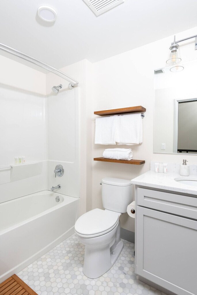 Feel at home in this apartment situated in one of Milwaukee's most historic buildings with architectural features that include original Cream City brick, exposed beams, arched windows, and city skyline views. This double queen apartment comfortably sleeps four with two queen beds in the same room. The sofa may serve as additional sleeping space, however please note it does not have a pull-out bed. Amenities include self check-in, high-speed Wi-Fi, two dedicated workspaces, a dining table that seats four, in-unit laundry, a Keurig, and a smart TV with Chromecast. The building is fully loaded with amenities including a fitness center, theater, work/study booths, and a game lounge with darts, pool, and cornhole. This listing includes one free parking space in a secured garage one block away (the Brewery Parking Structure). Instructions for accessing the garage will be provided prior to your arrival. Additional parking is available in the same garage and costs ~$25/day (and increases during events). Metered street parking is available throughout the neighborhood. Keep in mind Milwaukee requires anyone parking on the street overnight to register for a permit which you can request for free up to 3 nights by calling the city and requesting one. The garage has a vertical clearance of 7'2" which is enough for most consumer vehicles but may not accommodate larger vehicles such as RVs or full-size vans. Located in the heart of the historic brewery district and connected to the iconic Pabst sign spanning Juneau Ave, this apartment is a 5-minute walk to Fiserv Forum down cobblestone streets and a 5-minute drive to Downtown, Third Ward, and Marquette University. There is a zero-tolerance policy for parties or gatherings. No smoking of any kind is allowed anywhere on the premises including outdoor spaces, and a $500 minimum fine will be assessed and additional fees for remediation may apply. Quiet time is after 10pm. Guests must cover the cost to replace unreturned access devices such as keys, key cards, fobs, or parking passes. Early check-in accommodations will be made for self check-in anytime after 1pm, and all requests are subject to availability. [SI]