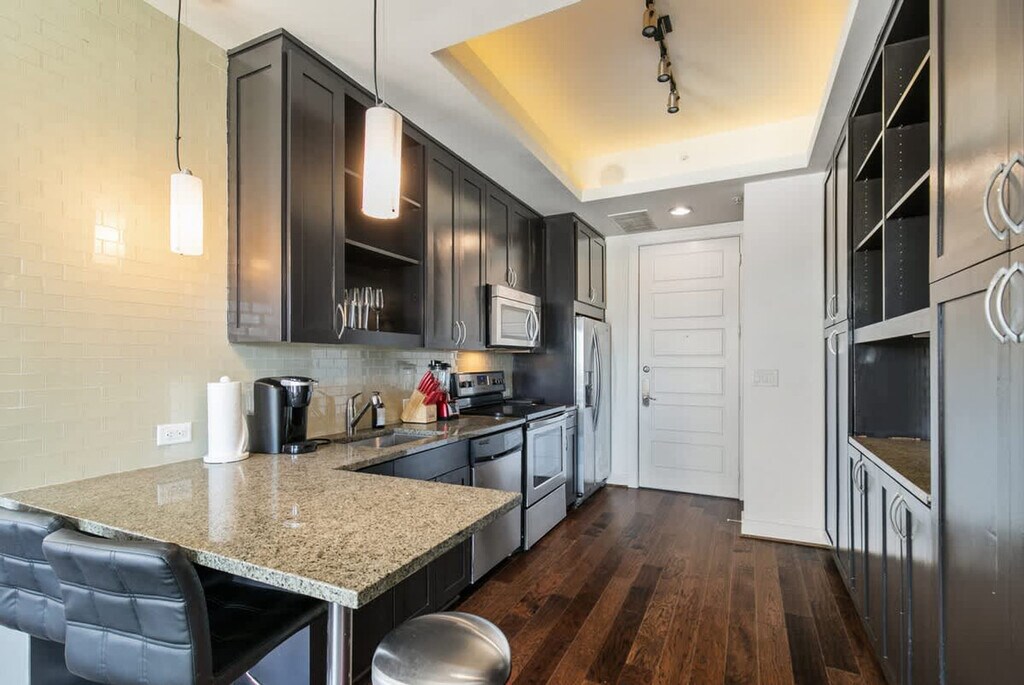 The advertised rate of $3,619/month is the lowest available price, based on a 30 day(s) stay with a move-in date of May 4, 2026. Rates vary depending on the duration of stay, season, and other parameters. For exact pricing and additional pricing components, please visit our website and enter your desired move-in and move-out dates. The rate is applicable when billed upfront; it can be higher if billed in multiple payments. Feel at home in this luxury studio apartment, perfect for a solo traveler, business traveler, or small group exploring Dallas. The apartment is designed for an ultimate experience. The cozy studio features a gourmet kitchen, living room, and laundry with an ironing board and clothes iron. The fully equipped kitchen includes quality kitchen utensils, plates, and a coffee maker. The bathroom is equipped with a hair dryer, high-quality white towels, body wash, and shampoo. There is also spacious closet space. Off-street parking includes one space; additional spaces may be requested. Free street parking is available after 6 pm (Monday to Saturday) and all day on Sunday. A pack n play or air mattress can be requested prior to reservation confirmation to ensure it is in the unit upon check-in. Located in the heart of Uptown, this apartment is in close proximity to all Dallas attractions. You'll be surrounded by the best Dallas has to offer, with multiple restaurants, shopping, and bars. Smoking or drug use of any sort is prohibited inside the apartment, and you agree to pay a $250 penalty for smoking inside the unit. Absolutely no parties or events are allowed, and guests should be respectful of neighbors. Quiet hours are from 10:00 pm to 7:00 am. No cats and dogs are allowed, unless special permissions are granted, and there is a $75 per day charge for pets unless waived in writing. There is a $250 charge for unauthorized parties. If you were given a parking pass and it was not returned, you will be charged a $500 replacement fee. [SI]