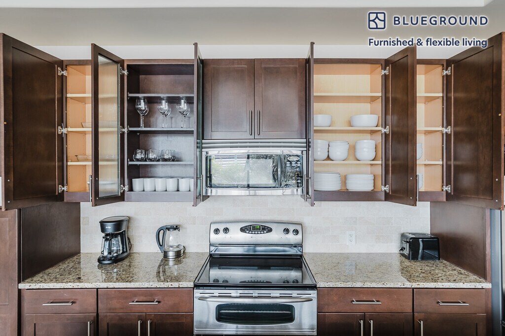 Discover the best of Austin, with this two bedroom apartment in Downtown Austin with balcony views over the city. It’ll be easy to simply show up and start living in this furnished apartment with its fully equipped kitchen, living room, and our dedicated, on-the-ground support. (ID #ATX158) The advertised rate of $3,820/month is the lowest available price, based on a 12 month(s) stay with a move-in date of July 1, 2027. Rates vary depending on the duration of stay, season, and other parameters. For exact pricing and additional pricing components, please visit our website and enter your desired move-in and move-out dates. The rate is applicable when billed upfront; it can be higher if billed in multiple payments. Brokers are welcome to reach out. Were you looking for an unfurnished lease? Try Blueground instead and upgrade from unfurnished to furnished living: - Furnished at rates comparable to unfurnished - No setup or furniture costs - save thousands - Move-in ready - save time, just bring your suitcase Designed with you in mind As with any Blueground apartment, you’ll find a thoughtfully designed space complete with beautiful furniture and a fully equipped kitchen in this two bedroom property. And, thanks to our superior quality mattresses, luxury linens, and towels, you can relax knowing you’ll always feel comfortably at home. When you’re ready for some fun, you can take in the Austin vibes or bring the entertainment to you with the premium wireless speaker or smart TV. This apartment also offers in-apartment laundry. Sleeping arrangements King Bed, 70.8in/180cm Queen Bed, 63in/160cm Amenities Building amenities unique to this two bedroom apartment include an on-site: - BBQ Area - Doorman - Dryer - Elevator - Swimming pool - Washing machine - Parking - Pets allowed Arrival and ongoing support The entire apartment is yours to enjoy! Throughout your stay, you’ll have access to our Client Experience team through the Blueground App. You can schedule additional cleanings, submit maintenance requests, and view our neighborhood recommendations with just a few taps. We’ll share all details upon confirmation of your stay. Other things to note Building amenities may have an extra cost. This Blueground apartment has flexible lease options, allowing you to book it for one month, a year, or more. Pets are welcome, though weight limits and breed restrictions apply and may incur fees. Parking is offered based on availability and is subject to a fee. We take great pride in ensuring every photo displayed is shot in our own units with our actual furnishings. That said, we regularly refresh our decor and furniture arrangement, which may differ from what’s pictured. Also note - There have been reported instances of homeless populations nearby - This apartment's central location means it can be noisy at times - Noise from the nearby nightlife can sometimes be heard late at night [SI]