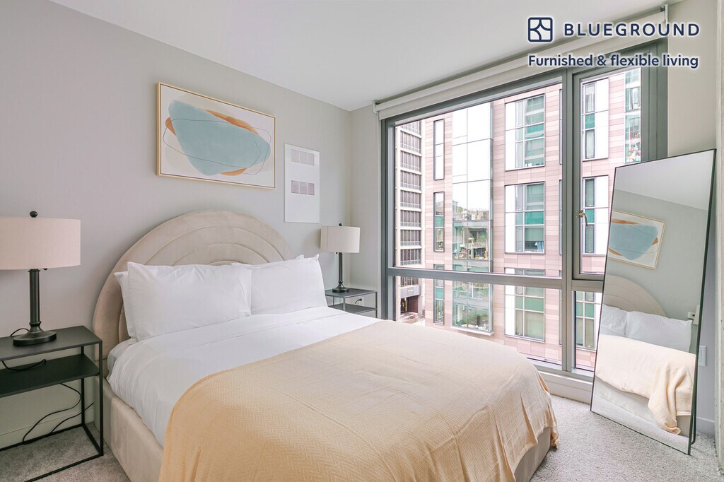 Discover the best of San Francisco, with this two bedroom apartment in Civic Center. It’ll be easy to simply show up and start living in this furnished apartment with its fully equipped kitchen, living room, and our dedicated, on-the-ground support. (ID #SFO2102) The advertised rate of $6,430/month is the lowest available price, based on a 12 month(s) stay with a move-in date of February 24, 2026. Rates vary depending on the duration of stay, season, and other parameters. For exact pricing and additional pricing components, please visit our website and enter your desired move-in and move-out dates. The rate is applicable when billed upfront; it can be higher if billed in multiple payments. Brokers are welcome to reach out. Were you looking for an unfurnished lease? Try Blueground instead and upgrade from unfurnished to furnished living: - Furnished at rates comparable to unfurnished - No setup or furniture costs - save thousands - Move-in ready - save time, just bring your suitcase Designed with you in mind As with any Blueground apartment, you’ll find a thoughtfully designed space complete with beautiful furniture and a fully equipped kitchen in this two bedroom property. And, thanks to our superior quality mattresses, fully stocked linens, and towels, you can relax knowing you’ll always feel comfortably at home. When you’re ready for some fun, you can take in the San Francisco vibes or bring the entertainment to you with the premium wireless speaker or smart TV. This apartment also offers in-apartment laundry. Sleeping arrangements King Bed, 70.8in/180cm Queen Bed, 63in/160cm Amenities Building amenities unique to this two bedroom apartment include an on-site: - Dryer - Elevator - Washing machine - Parking - Pets allowed Arrival and ongoing support The entire apartment is yours to enjoy! Throughout your stay, you’ll have access to our Client Experience team through the Blueground App. You can schedule additional cleanings, submit maintenance requests, and view our neighborhood recommendations with just a few taps. We’ll share all details upon confirmation of your stay. Ideally Located This furnished apartment is in the Civic Center. The area contains many of the city’s largest government and cultural institutions. It is home to San Francisco’s City Hall and is surrounded by a number of classical buildings. The Supreme Court of California, the Asian Art Museum and the library are all located here. It has two large plazas (Civic Center Plaza and United Nations Plaza) and is the main site for any culturally significant activity. Located in the heart of the city, the SFO Airport is just 25 minutes by car or 45 minutes by BART. Other things to note Building amenities may have an extra cost. This Blueground apartment has flexible lease options, allowing you to book it for one month, a year, or more. Pets are welcome, though weight limits and breed restrictions apply and may incur fees. Parking is offered based on availability and is subject to a fee. We take great pride in ensuring every photo displayed is shot in our own units with our actual furnishings. That said, we regularly refresh our decor and furniture arrangement, which may differ from what’s pictured. [SI]