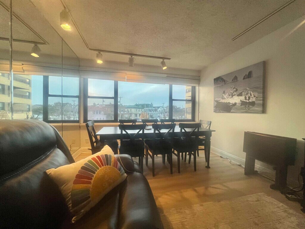This cozy and comfortable studio apartment on the 1st floor at the wonderful Warwick Condominium on the Boardwalk with the beach and ocean at your front door. It is furnished with a king size bed, full sleep sofa and a dinette set. It comes with dishes, silverware, coffee maker, microwave, pots & pans but the tenant must bring there own towels and linens. The outstanding features are the following which are included in the rent ---24 hour front door attendant, electric, A/C, basic cable, assigned parking spot in the Warwick lot, fabulous pool, gym and there is so much more. Smoking is prohibited in the building. Rental period is from May 22 to September 8. This is one of the best values at the shore. Vacant with a lock box so go and show. The Warwick charges a non refundable $350.00 for all move ins MLS ID 603765