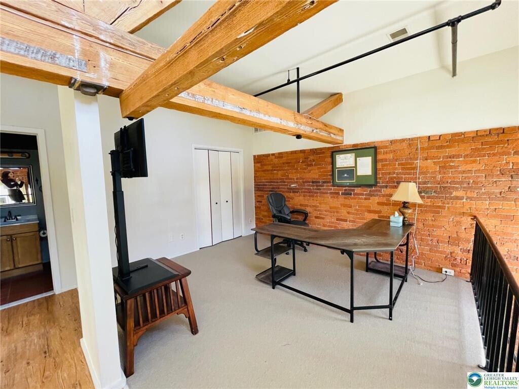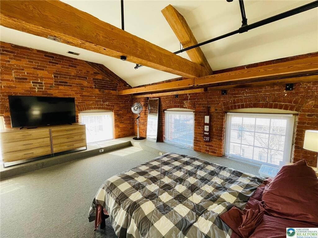 Welcome to the Dery Silk Mill Apartments located in the heart of Catasauqua. Situated by a stream this Historic building presents open concept apartments that are stylish as well as unique presenting a wonderful living space for tenants to enjoy. Offering a 2nd fl. 1 bedroom 2 story unit with an open concept living room, dining area and kitchen. The spiral staircase leads to your upper level with a generous loft style open primary bedroom with double closets, large guest bedroom and full bath. This swanky apartment has modern touches with period details including exposed brick walls, beamed ceilings, stately windows, and lots of natural light. Unit has central air with electric heat pump and dishwasher. Secured access to building plus off-street parking. Laundry facilities on both floors for tenants. Conveniently located to all major highways, hospitals, shopping areas and the airport. Landlord will accept a cat only with additional monthly fee. Rent includes water, sewer, and garbage. Non-smoking building. Schedule your private tour today.