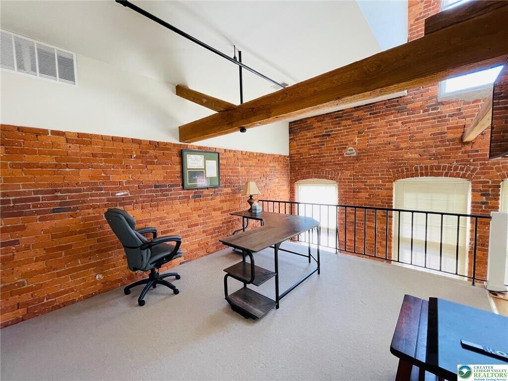 Swanky Dery Silk Mill Apartments located in the heart of Catasauqua. Situated by a stream this Historic building presents open concept apartments that are beautiful as well as unique presenting great space. Located on the 2nd fl. this beautiful corner 2 story unit has open concept living room, dining area and kitchen. A spiral staircase leads to your upper level with a loft style open master bedroom, full bath and guest bedroom. These great apartments offer modern touches with period details including gorgeous exposed brick walls, beamed ceilings, tall windows and lots of natural light. Unit has central air with efficient electric heat pump and dishwasher. Secured access to building with off street parking. On-site laundry facilities on both levels. Conveniently located close to all major highways, shopping areas, hospitals and minutes from LVAR Airport. Non-smoking building. Landlord accepts cats with extra monthly fee. Rent includes water, sewer & trash. Schedule your private tour.