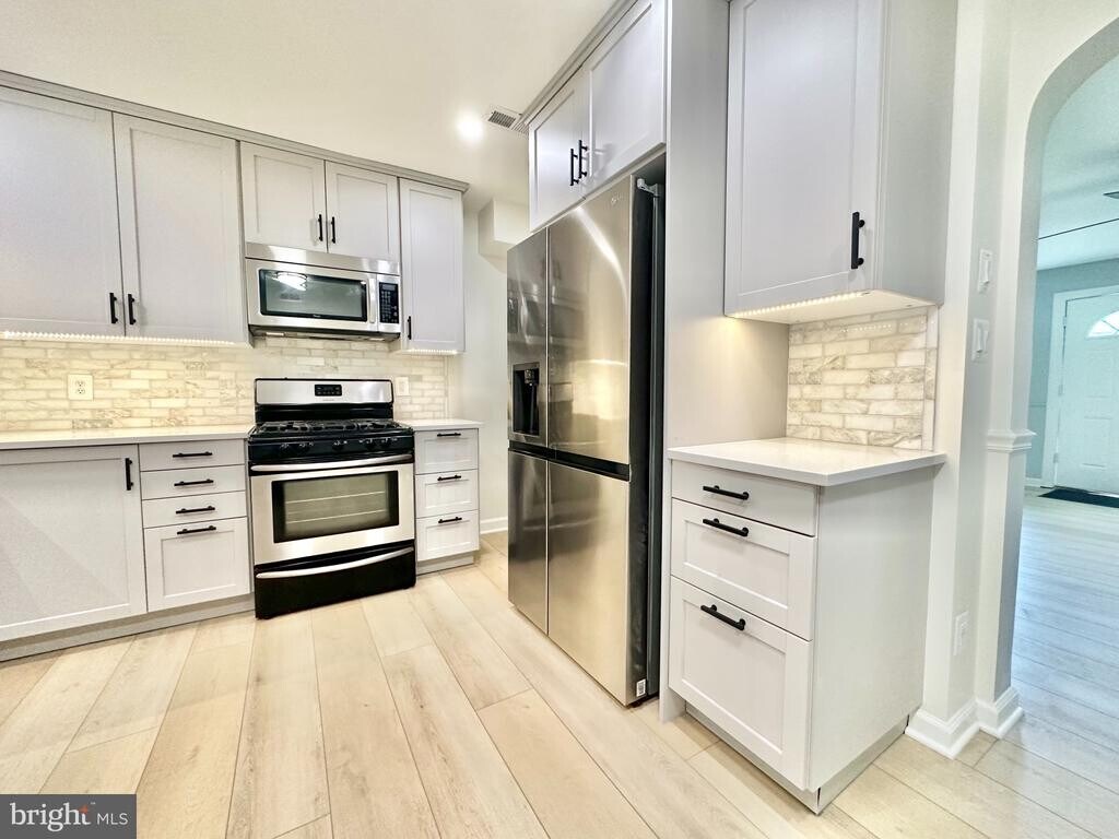 Beautifully updated with stunning kitchen, flooring and more. This 3 bedroom, 2 bathroom row-home in Old Town Alexandria is so charming and convenient to everything Old Town has to offer. Mahogany hardwood floors on main level with new carpet on the upper level and freshly painted. The main level features a large living room, dining area, and a fabulous remodeled kitchen. Just past the kitchen is a large sun-filled multi use room with a door leading to a small deck overlooking a fenced in yard that has rear access parking if needed and access to the rear alley which leads to a playground/park. There are 3 bedrooms on the upper level and an updated bathroom. The lower level is finished with an updated full bath. Ideally located in NW Old Town and walking distance to Braddock Metro and nearby restaurants & shops with easy access to downtown DC and Northern Virginia, easy commute to the Pentagon.
