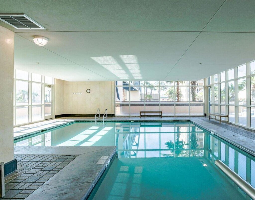 Feel at home in this bright and cheerful condo on the 18th floor, offering sweeping views of Gulf Shores. A climate-controlled skywalk provides direct access to the beach. The building has an elevator. The condo is decorated in a vibrant, welcoming palette. It features a fully equipped kitchen, high-speed Wi-Fi, central air-conditioning, and a TV with standard cable. Each bedroom has its own TV and attached bathroom. Amenities include a shared heated indoor pool, a shared hot tub, and a shared sauna. Parking fees are collected upon arrival (card payments only). Max 2 vehicles are allowed per reservation. Rates per vehicle: $20/day for the first 3 days (max $60 per stay), free from Day 4-7, and $5/day from Day 8 onward. The winter rate cap (Nov–Mar) is a max of $60 per stay. The Gulf State Park Pier is just minutes away. Waterville USA is nearby, and nature lovers will appreciate Wade Ward Nature Park. Smoking is not allowed in the unit or on the balcony, and any violation of the smoking policy will incur a $250 fine plus the cleaning costs necessary to remove smoke odors. Quiet hours are observed from 10 pm-8 am, and violators will be charged a $200 fine. The condominium association has a strict "No Pets" policy, which applies to emotional support animals as they are not covered by the ADA; only ADA compliant service dogs are allowed according to Federal Law. No parties or events are allowed, and violators will be charged a $500 fine. For March 1st to May 1st, the minimum age requirement for check-in is 25 years old. For same-day late check-ins, you need to get approval before booking. Includes a dedicated workspace. [SI]