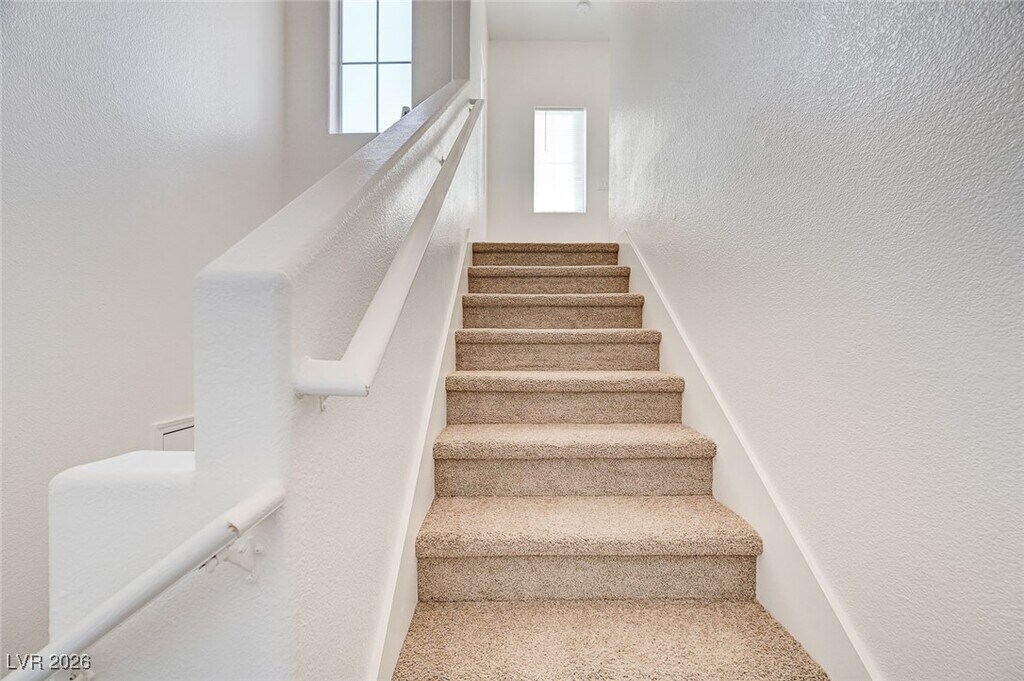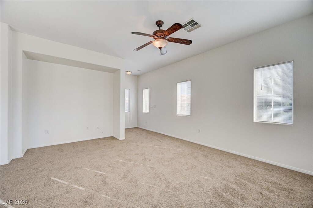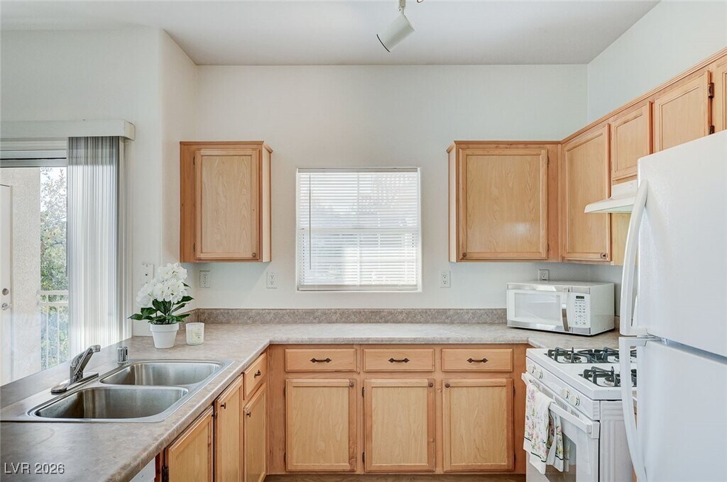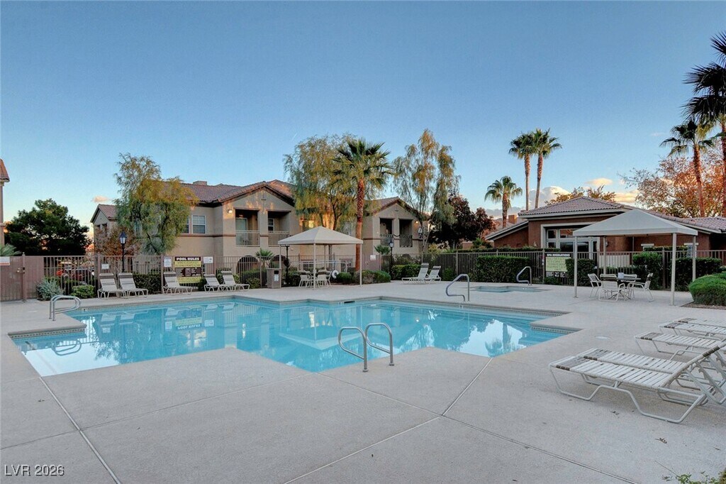 Welcome to the beautiful and tranquil Legends Community, nestled next to Lone Mountain and surrounded by scenic hiking trails, parks, and open desert landscapes—ideal for those who appreciate nature and outdoor living. This gated community offers resort-style amenities including a swimming pool, spa, fitness center, and well-maintained common areas.This turn key, top-floor unit offers exceptional peace and quiet with views galore, including stunning mountain views from the living area. The home features 2 bedrooms and 2 bathrooms, a private balcony with a storage closet, and an open, airy layout. Interior highlights include a full-size W/D Roman soaking tub, a spacious walk-in closet, plus two additional closets in the primary bedroom. The unit has been freshly painted and updated with brand-new carpet and flooring throughout, making it truly move-in ready. Owner pays for water, trash, and HOA dues.Tenant responsible for electricity, gas, and cable/internet.