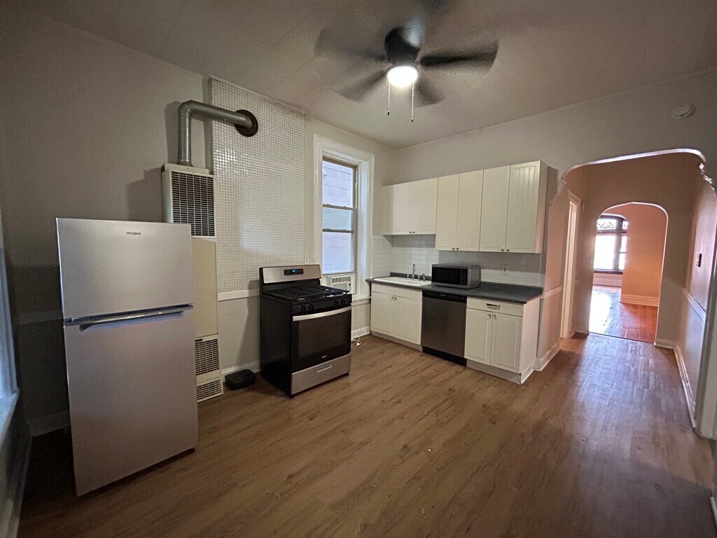 Must SEE! Be the first to live in this newly Updated classic vintage Chicago building. Beautiful 2 bedroom plus office/Den (8X8). Vintage details include stained glass windows, built in hutch, and claw foot bathtub. This unit is a first floor walk up with easy access to laundry! Large living space with separate living and dining rooms. Updated cabinets and pantry in kitchen. Enclosed back porch and nice common backyard. Laundry in building. Central heat. Great location...on a quiet street between Division St. and Chicago Ave.. You'll be close to all of the restaurants, cafe's and entertainment that Division street has to offer. Easy access downtown on 90 or public transport(Bus & Blue Line). The unit features many of the original vintage details including stained glass windows, built in hutch and original claw tub. Unit Features: -Original vintage details including stained glass windows, built in hutch and original claw tub. -Coin Laundry On Site! - Easy Access! -Enclosed Back Porch -Pets Negotiable -Tenant pays gas and electric. -Large Units! -New Appliances -Dishwasher -Central Heat - Window AC Included!