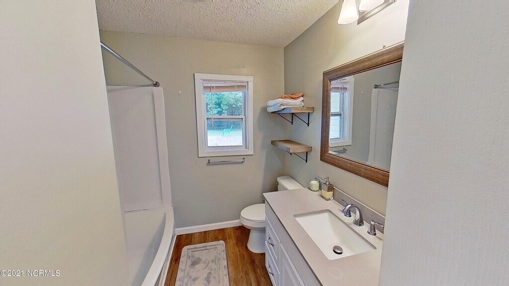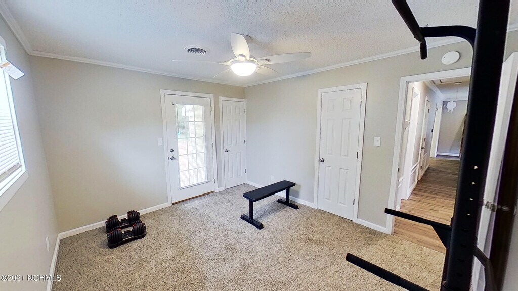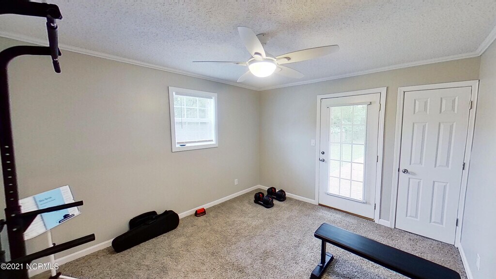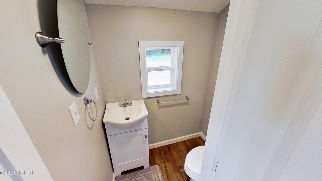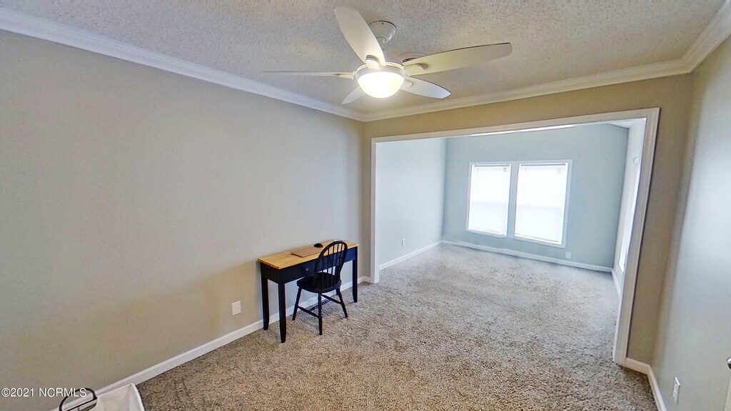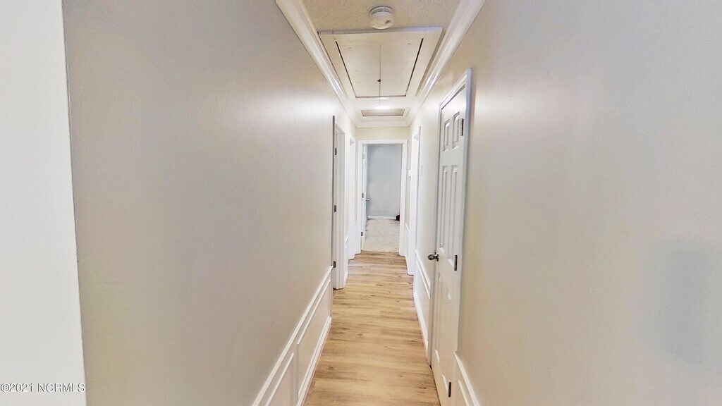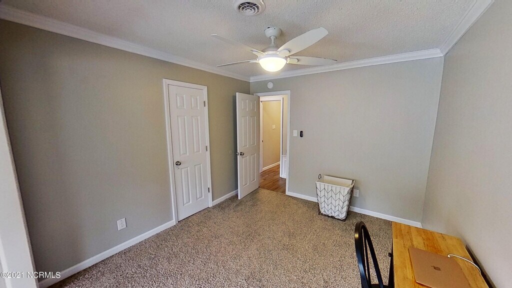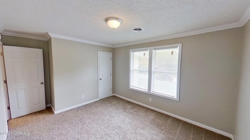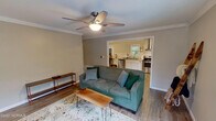 This charming home features 3 bedrooms / 1.5 baths and is filled with lots upgraded features. Beautiful wood-like LVP flooring flows from the foyer through the living room and kitchen. Decorative crown molding and window blinds are throughout. The kitchen offers plenty of space to cook with loads of counters and plenty of cabinets, decorative tile backsplash, stainless steel appliances and a laundry area with additional storage cabinets and room for your own washer and dryer. Cozy carpet is found in the three generously sized bedrooms. The main bedroom includes a private half bath and access to the back deck. The second bedroom includes a 10x11 sitting area or office. The third bedroom includes a double window overlooking the front yard. The full bath has been tastefully updated with a new vanity, solid surface counter and decorative mirror. The tree lined fenced back yard has space for all of your outdoor activities on the lawn or on the oversized deck. Paved driveway for off-street parking and a storage shed in the back yard are added features. Located in the popular Northwoods neighborhood, convenient to area bases, shopping and dining. Schedule a Showing: We are an Equal Housing Opportunity Management Company and abide by the term of the Federal Fair Housing Act. No Pets. No Smoking, e-cigarettes or vaping. All applicants over 18 years of age are subject to a background check, including criminal, credit, employment verification, and past tenancy.