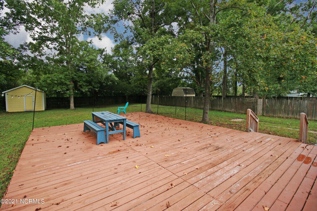 This charming home features 3 bedrooms / 1.5 baths and is filled with lots upgraded features. Beautiful wood-like LVP flooring flows from the foyer through the living room and kitchen. Decorative crown molding and window blinds are throughout. The kitchen offers plenty of space to cook with loads of counters and plenty of cabinets, decorative tile backsplash, stainless steel appliances and a laundry area with additional storage cabinets and room for your own washer and dryer. Cozy carpet is found in the three generously sized bedrooms. The main bedroom includes a private half bath and access to the back deck. The second bedroom includes a 10x11 sitting area or office. The third bedroom includes a double window overlooking the front yard. The full bath has been tastefully updated with a new vanity, solid surface counter and decorative mirror. The tree lined fenced back yard has space for all of your outdoor activities on the lawn or on the oversized deck. Paved driveway for off-street parking and a storage shed in the back yard are added features. Located in the popular Northwoods neighborhood, convenient to area bases, shopping and dining. We are an Equal Housing Opportunity Management Company and abide by the term of the Federal Fair Housing Act. No Pets. No Smoking, e-cigarettes or vaping. All applicants over 18 years of age are subject to a background check, including criminal, credit, employment verification, and past tenancy.