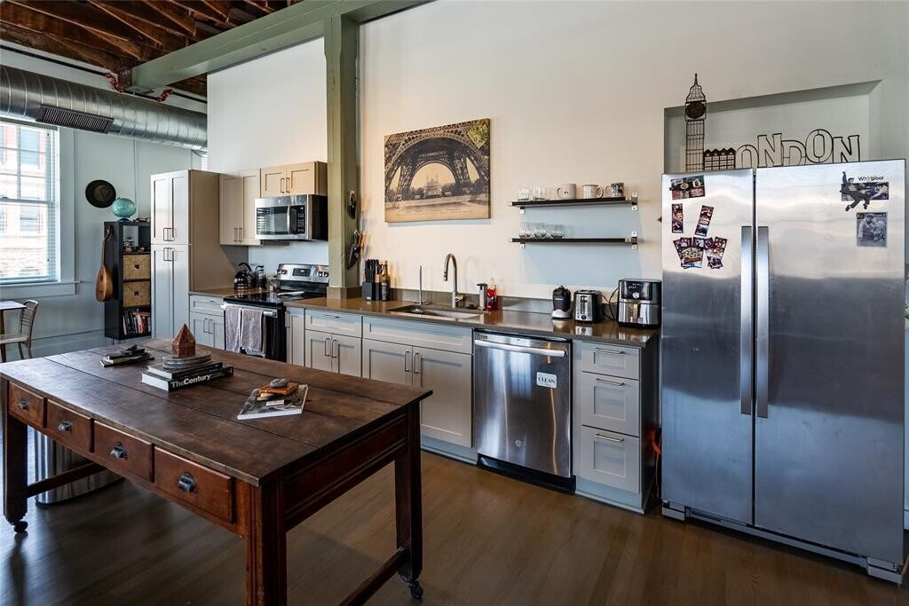 Absolutely beautiful second story corner loft. Open concept floorplan with windows on the north and west side of the loft providing a warm bath of sunshine in the loft. From the wood floors to the lofty, exposed ceilings, this loft offers the scenic location of downtown Taylor. The exposed kitchen and large living area make this a most impressive living arrangement. MLS ID 8254891