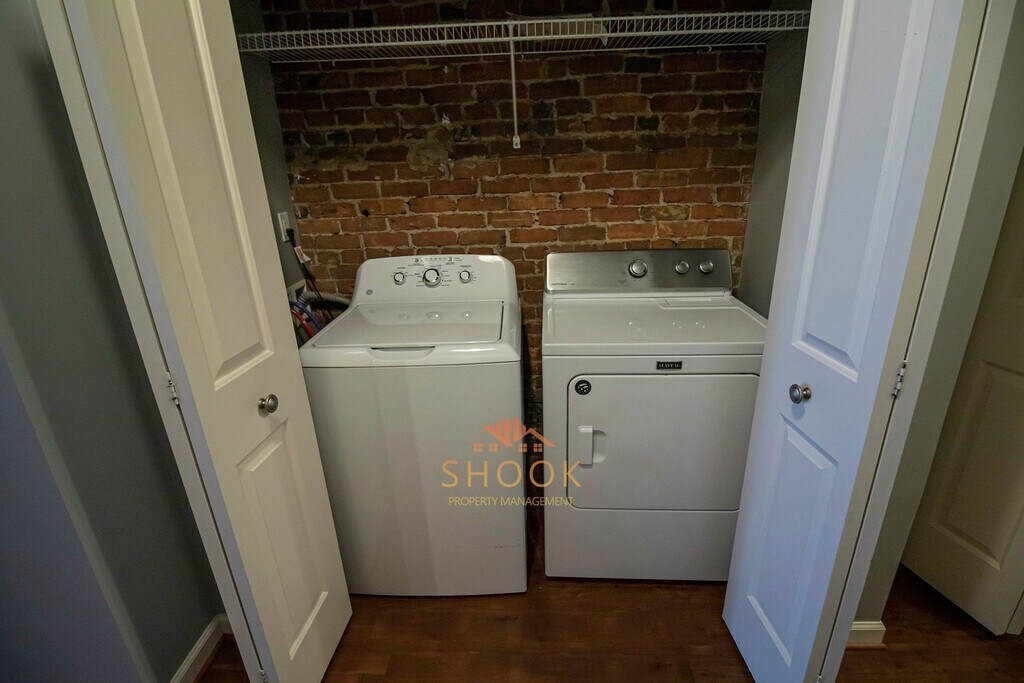 You only pay electric in this 2 story luxury apartment with 2 beds, 2.5 baths. Beautiful views of the courthouse downtown. Huge walk in closets with lots of storage. Beautiful exposed brick in the 2 story living room with lots of natural light. Additional living room overlooks the courthouse. Stainless steel appliances and washer/dryer included. Sorry, no pets or smoking allowed. For more information, please visit or call us at .