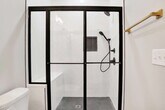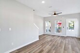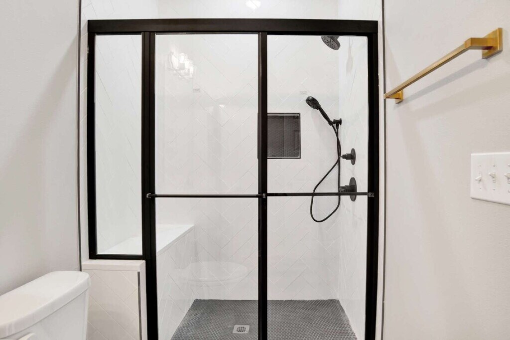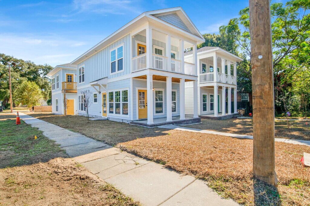 Constructed in 2023, this new build offers contemporary finishes throughout. The living areas are enhanced by luxury vinyl plank flooring, complemented by tiled bathroom floors. The master bathroom boasts a tiled shower with dual shower heads for an elevated experience. The kitchen features white quartz countertops, blue cabinetry, and modern brass fixtures. Designed with roommates in mind, the home comprises three bedrooms, each with its own private bath. Ideally located near downtown Pensacola and a short drive from Pensacola Beach, this residence combines modern luxury with convenience.