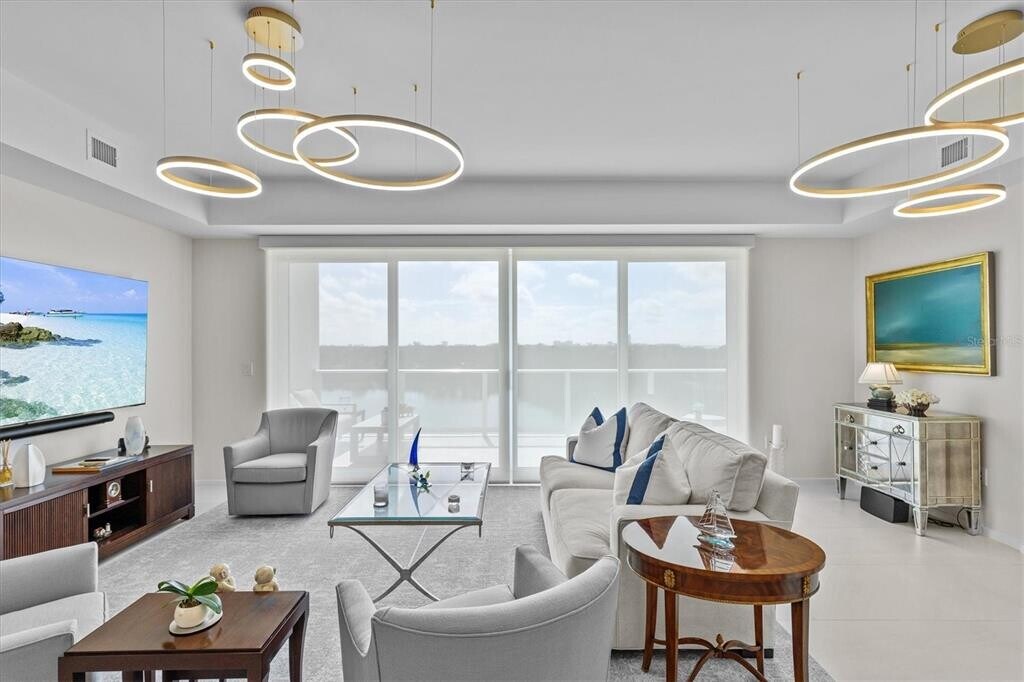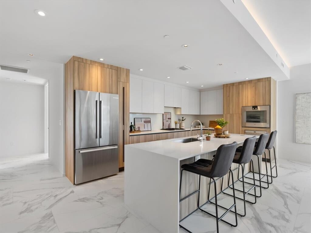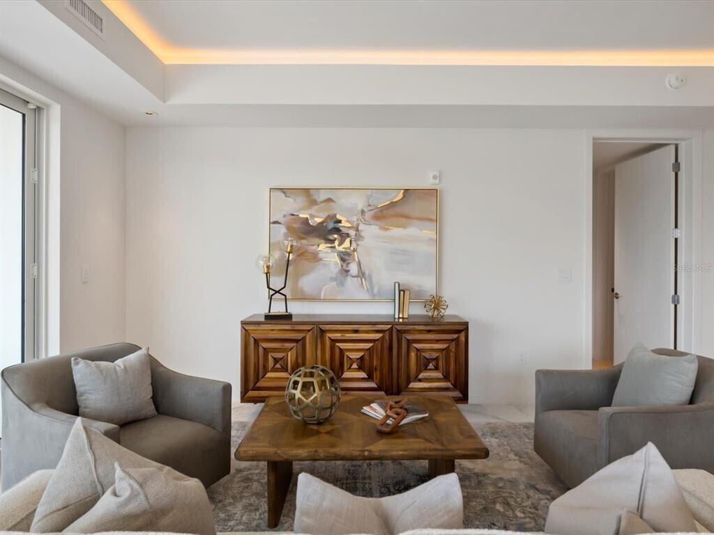 One or more photo(s) has been virtually staged. Welcome to luxury living at its pinnacle in this breathtaking Sky Penthouse at Serena by the Sea,Clearwater’s most iconic resort-style waterfront community. This extraordinary residence offers an unparalleled blend of sophistication,comfort,and sweeping panoramic water views. From the moment you enter,you’re greeted by soaring 14-foot ceilings and a light-filled interior defined by impeccable designer finishes and meticulous attention to detail. The open-concept layout flows effortlessly,seamlessly connecting the living,dining,and kitchen spaces—perfectly designed for both refined entertaining and relaxed everyday living. Expansive floor-to-ceiling windows frame captivating views of the water while bathing the home in natural light,creating a serene and elevated atmosphere throughout. At the heart of the residence,the gourmet chef’s kitchen showcases custom Italian cabinetry,elegant Bianco Venato stone countertops with a dramatic waterfall-edge island,and a full suite of premium Gaggenau appliances—a stunning space that balances functionality with modern luxury. This beautifully appointed home features 2 spacious bedrooms and 3 full bathrooms,along with an 11' x 11' den that can easily be converted into a third bedroom,offering flexibility to suit your lifestyle. The primary suite is a true private retreat,complete with custom Italian-designed closets and a spa-inspired en-suite bath featuring rainfall shower heads and refined finishes designed for relaxation and rejuvenation. Serena by the Sea redefines resort-style living,offering over 23,000 square feet of world-class amenities,including a saltwater heated pool,social lounge for gatherings and entertainment,a state-of-the-art fitness center,private spa club with massage room and salon,and 24/7 concierge services—delivering a lifestyle of effortless luxury and convenience. Ideally located just 1.5 miles south of the charming coastal town of Dunedin,this residence offers the perfect balance of tranquility and accessibility. This is a rare opportunity to experience the epitome of waterfront luxury living at Serena by the Sea. Schedule your private showing today and step into the lifestyle you deserve. MLS# TB8488857