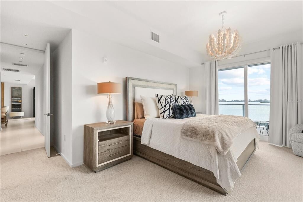 Available for Rent! Luxury living at Serena by the Sea with 23,000+ square feet of resort-style amenities overlooking picturesque Clearwater intracoastal waterway. Unit 510 is a south-facing 2 Bedroom + Guest Room with California Closets throughout,3 FULL Bathrooms,1833 interior SF unit high on the 5th floor with direct water and city view and expansive private covered terrace providing added living space and shade from the Florida sun. Custom chandeliers add stylish designer lighting over the open Living & Dining Room,along with recessed lighting over the Kitchen. High-end features throughout include Bosch and Gaggenau appliances including new smart refrigerator/freezer integrated within the cabinetry with filtered water dispenser,Wi-Fi connection and interior cameras (to remind yourself what you need while at the grocery store!); 5-burner gas cooktop,upgraded wall oven,microwave and dishwasher set in large island with waterfall edges; beverage cabinet with wine fridge. In-unit Laundry Room features Maytag front-loading washer & dryer with pedestals and custom built-in cabinetry with hanging rack. Crestron Smart-home features include custom lighting and remote-controlled window shades and blackout curtains. THREE (3) reserved parking spaces with this unit include 2 covered garage spaces (tandem) plus 1 outdoor parking space,and climate-controlled storage unit. Enjoy the abundance of amenities for Serena by the Sea residents including a beautiful 2-story lobby with 24/7 front desk concierge,resort-style saltwater swimming pool and jacuzzi surrounded by lounge chairs,daybeds,and cabanas,his & her bathrooms & outdoor shower,2 summer kitchens with BBQ grills and televisions,fire pit lounge,interior Spa with second jacuzzi,sauna,relaxation area,massage room,hair salon,locker room,and more. State of the art fitness center on the second level offers vibrant water views and a spacious outdoor area perfect for your morning yoga. Rent includes most utilities (included: gas,water & sewer,trash,high-speed internet,use of amenities),tenant only responsible for electricity. Inquire about lease start date. Located conveniently between downtown Clearwater,Clearwater Beach,and downtown Dunedin and Honeymoon Island - enjoy the coastal lifestyle just a short drive from Tampa and St-Pete-Clearwater International Airports. MLS# TB8499718