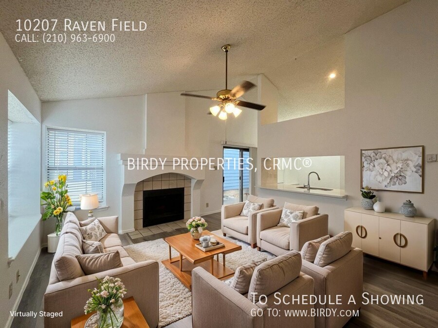 **MOVE-IN INCENTIVE: 1/2 OFF OF THE FIRST FULL MONTHS RENT!** Welcome to this inviting 3-bedroom, 2-bath home that blends comfort with everyday convenience. Inside, you'll find stylish vinyl flooring, a spacious living room with a cozy fireplace, and high ceilings that create an open, airy feel. The home is equipped with HVAC and a programmable thermostat to help keep the space comfortable year-round. The kitchen is thoughtfully designed for both function and gathering, featuring a breakfast bar, eat-in dining area, electric stove, dishwasher, and refrigerator, perfect for everything from quick meals to relaxed evenings in. The primary bedroom offers a private retreat with an ensuite bath that includes a walk-in closet, walk-in shower, and single vanity. A dedicated laundry closet with washer and dryer hookups adds everyday practicality. Step outside to enjoy the backyard, complete with a covered patio, mature trees, and a mix of chain link and privacy fencing, ideal for relaxing or entertaining. Additional highlights include a one-car garage with door opener and convenient access to nearby shopping and community amenities. "*Our award winning Resident Benefits Package (RBP) required program includes Liability Insurance, Pest Control, Monthly Air Filter Delivery, Move-in Concierge (utilities/cable/internet), Credit Building, Resident Rewards, Identity Fraud Protection and more for only $65/mo. *If you provide your own insurance policy, the RBP cost will be reduced. Optional Premium Upgrades Available as well, More details in application. *PET APPS $30 with credit card/debit payment per profile or $25 by ACH per profile. High-Speed Internet Connectivity Made Simple: This property Now includes Group Rate 1Gig Internet (GRI) for just $69.50 per month - providing fast, reliable service at a low flat rate. With GRI, residents enjoy: 1 Gig high-speed internet No data caps All required equipment included Ongoing technical support. Premium amenity for your home, providing seamless connectivity. no surprise equipment fees, and no long-term contracts to manage. All information in this marketing material is deemed reliable but is not guaranteed. Prospective tenants are advised to independently verify all information, including property features, availability, and lease terms, to their satisfaction. *some marketing photos may be virtually staged images*