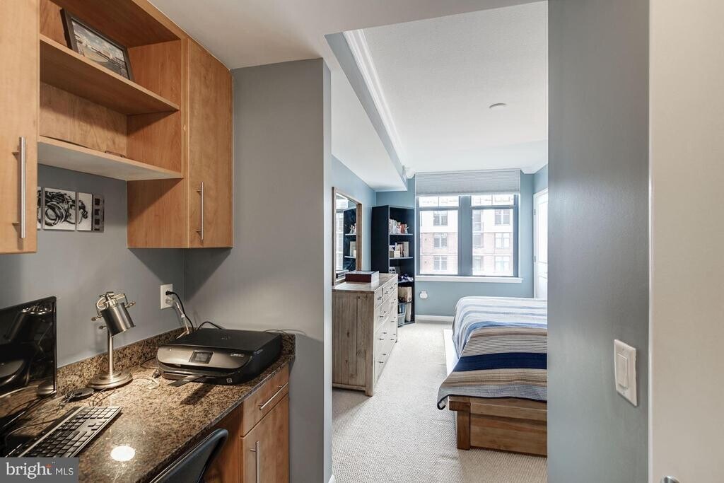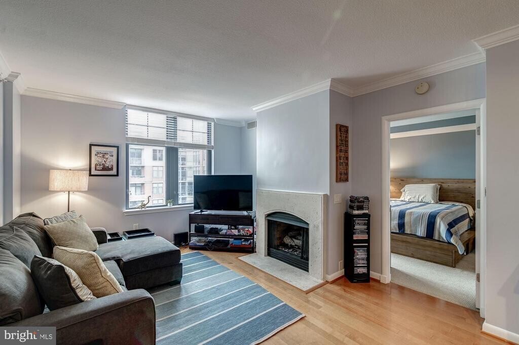 Open house Saturday 10/25 from 12 to 2 pm. Experience urban luxury in this exquisite 1-bedroom, 1-bathroom residence located in the prestigious Clarendon 1021. This contemporary high-rise condo, built in 2005 offers 750 square feet of meticulously designed living space. Step inside to discover a warm and inviting atmosphere, highlighted by rich hardwood flooring and plush carpeting that create a cozy yet sophisticated ambiance. The spacious open concept living area features a stunning gas fireplace, perfect for intimate evenings at home. The well-appointed kitchen is a chef's dream, equipped with stainless steel appliances, including a built-in microwave, range, and dishwasher, complemented by a charming breakfast area for casual dining. Enjoy the serene courtyard views from your private oasis, where natural light floods the space, enhancing the overall warmth of your home. The large bedroom retreat includes a generous walk-in closet, while the bonus home office space with custom built-ins provides the perfect area for work, study, or hobbies.The convenience of in-unit laundry adds to the effortless lifestyle this residence offers. Located in the heart of downtown Clarendon, residents benefit from resort-style amenities, including a 24-hour concierge, fitness center, and an outdoor pool, perfect for relaxation and social gatherings. You'll love the convenience of a washer/dryer in-unit, and yes—GARAGE parking and a storage unit are part of the package. Step outside and you’re just seconds from Clarendon Metro, Trader Joe’s, Whole Foods, Crate & Barrel, Circa, Pure Barre, and all the restaurants, nightlife, and shops that make Clarendon one of Arlington’s hottest neighborhoods. Three quick Metro stops to DC, minutes to Amazon HQ2, and PET FRIENDLY too! Indulge in the exclusive lifestyle that Clarendon 1021 provides, where every detail is designed for comfort and sophistication. Freshly painted and ready for you to move right in!