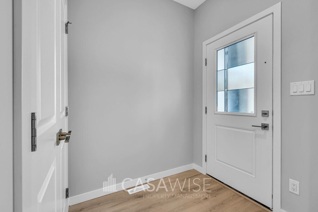 NEWLY BUILT 4-Bed/3-Bath Main Floor Unit With a SGL Garage in Britannia! Contemporary open-concept layout. Thoughtfully designed for comfort and functionality. Perfect for families! ? Spacious living and dining areas. ? Elegant electric fireplace adds warmth and style. ? Modern kitchen featuring quartz countertops, stainless steel appliances, and ample cabinetry. ? Mudroom at the back entrance for extra storage and organization. ? Main level includes an additional bedroom and full bathroom — ideal for guests or a home office ? Upper floor includes 3 bedrooms, including a large master suite with private ensuite and generous closet space. ? Upper-level main bathroom with modern fixtures. ? Convenient in-suite washer and dryer. ? One detached single-car garage included for added convenience, located at the rear of the unit. Additional second stall available for $100/month. Snow removal and lawn maintenance are tenant's responsibility. ? The basement is being rented out separately. Located in the vibrant community of Britannia Youngstown, this suite offers unbeatable convenience—just minutes from schools, rec centres, Mayfield Common, and major roadways like Anthony Henday. Enjoy quick access to downtown and reach West Edmonton Mall in just 10 minutes, making shopping, dining, and entertainment easily within reach. Fixed utility fee of $350/month (includes heat, water, and power). Additional fees may apply depending on the number of occupants. No Pets. No Smoking. Professionally managed by Casawise Property Management Only applications received through our site will be processed: If interested, please provide us with your name, phone number, available times for viewings and a little background about you (when do you need the unit for, how many people would be living in the unit, etc.). Thank you! **Disclaimer: The current photos are from a similar unit. Colors, finishes, and layout may vary** Note: Seasonal items, including but not limited to landscaping, decks, fences, and sidewalks, are not guaranteed. They are subject to the owner and builder approval, as well as weather conditions and contractor availability.