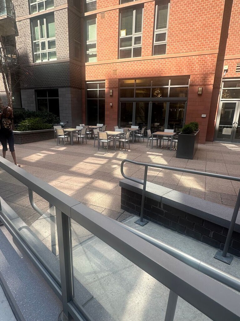Welcome to The Velocity — a spacious one-bedroom plus separate den with a private balcony in the extremely popular Navy Yard neighborhood of Washington, D.C. This interior, north-facing unit features floor-to-ceiling windows that provide steady, natural daylight without harsh glare. The open layout connects the kitchen, dining, and living areas in a comfortable, functional way, with hardwood floors throughout. The kitchen includes stainless steel appliances, quartz countertops, and an island with seating. The den offers flexibility for a home office, guest space, or reading area and includes its own closet and ceiling fan. The primary bedroom features a tray ceiling, a walk-in closet, and a separate built-in armoire, providing excellent storage options. The bathroom is modern and well-sized, with ample counter space, storage, and a walk-in shower with a built-in bench. In-unit washer and dryer included. The Velocity offers a heated rooftop pool, multiple seating areas, impressive city views, a barbecue area, and a fresh herb garden. A landscaped terrace-level courtyard provides another comfortable outdoor space to relax and unwind. Residents also enjoy a fitness center, community lounge, 24/7 front desk concierge, and secure package services. Your new home could be just two blocks from Nationals Park, one block from the Navy Yard Metro, and moments from Audi Field, restaurants, and the waterfront. Quick access to I-295, I-395, and I-66 makes commuting and weekend getaways easy. One secured garage parking space is included. No pets permitted in this unit.