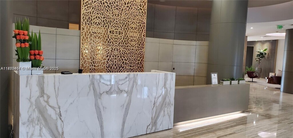 Gorgeous Ocean and water views! Beautiful and spacious unit, Porcelain flooring throughout, Walk in closet with built in cabinets, sheer curtains, brand new Samsung range and blackout roller shades, glass enclosure for shower, balcony, new Bosch dishwasher, Kitchenaid refrigerator and microwave, unfurnished, Freshly painted white, impact glass windows, one assigned parking space and valet parking, numerous amenities .....Cafe and gourmet market, state of the art gym, private beach service, movie theater, 24 hour security. Washer/dryer in unit. Minutes to Bal Harbour Shops, Aventura Mall. Showingtime or call/text for appts. Credit report and proof of income to be provided with CTL