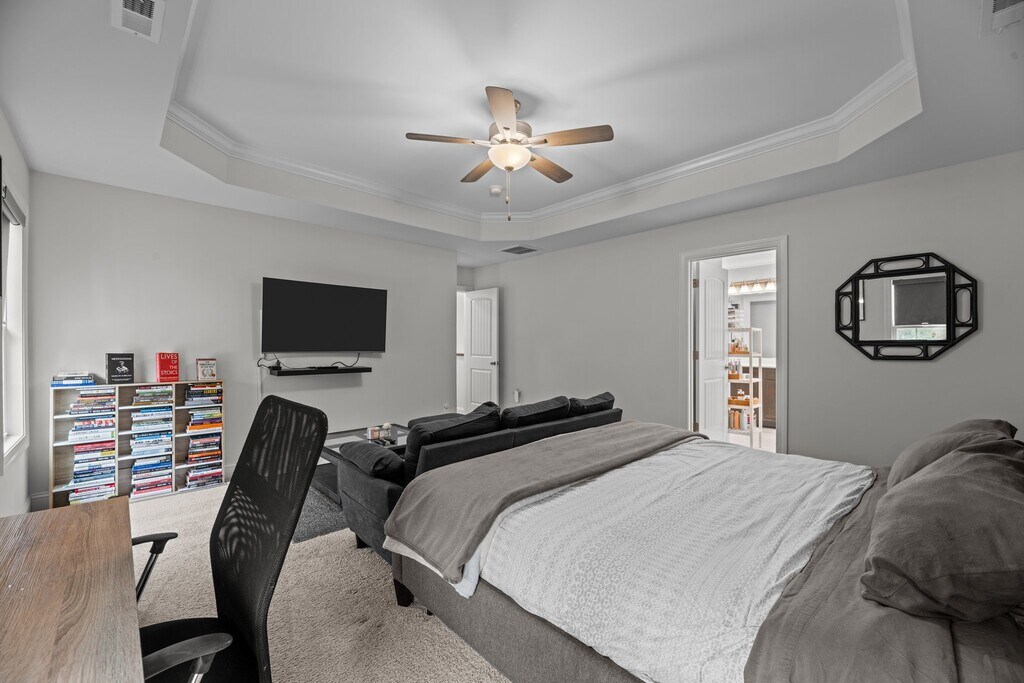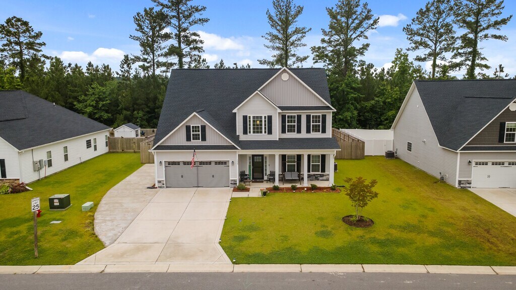 Discover the perfect blend of space, style, and privacy in this beautifully maintained 4-bedroom, 2.5-bathroom home in the desirable Bluewater Rise neighborhood.Step inside the impressive two-story foyer and be greeted by an open-concept living and dining area featuring a custom board-and-batten wall and a cozy gas fireplace. The kitchen boasts granite countertops, a breakfast nook, and easy access to the updated 120 sq ft enclosed patio--ideal for year-round relaxation. Additional highlights include a large primary suite with a luxurious en suite bathroom and walk-in closet, plus a versatile office/flex room perfect for working from home or a playroom.Enjoy the outdoors in your spacious, fully fenced backyard with mature trees, a storage shed, and plenty of room for entertaining or unwinding. The welcoming front porch, extended driveway with ample parking, and serene tree-lined setting make this home as functional as it is charming.Located close to schools, parks, shopping, and major routes, 1028 Mackerel Manor truly has it all. Don't miss this opportunity to make it your next home!