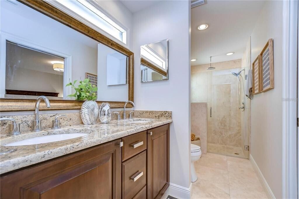 Imagine taking just a five-minute walk from your doorstep to the serene, private sands of Belleair Beach. That's just one of the many charms of this beautiful home. With its four comfortable bedrooms, , and two well-appointed bathrooms, it's a space that feels both luxurious and welcoming. In the owner's suite, pamper yourself in the splendor of a custom walk-in closet and an en-suite that's a true retreat, complete with elegant travertine. The heart of the home shines with pristine porcelain tile flooring, while the bedrooms feature warm ¾” walnut-stained oak wood floors, for those who love to cook, the eat-in kitchen is a dream, boasting rich cherry cabinets, gleaming quartz countertops, and a four-burner gas stove. The family bathroom is just as impressive, with its chic updates, stylish cabinetry, quartz counters, and a ceramic-tiled shower stretching from floor to ceiling. It's the thoughtful extras that make this home special.