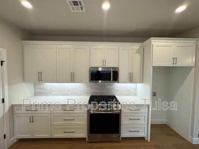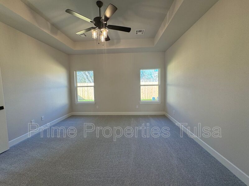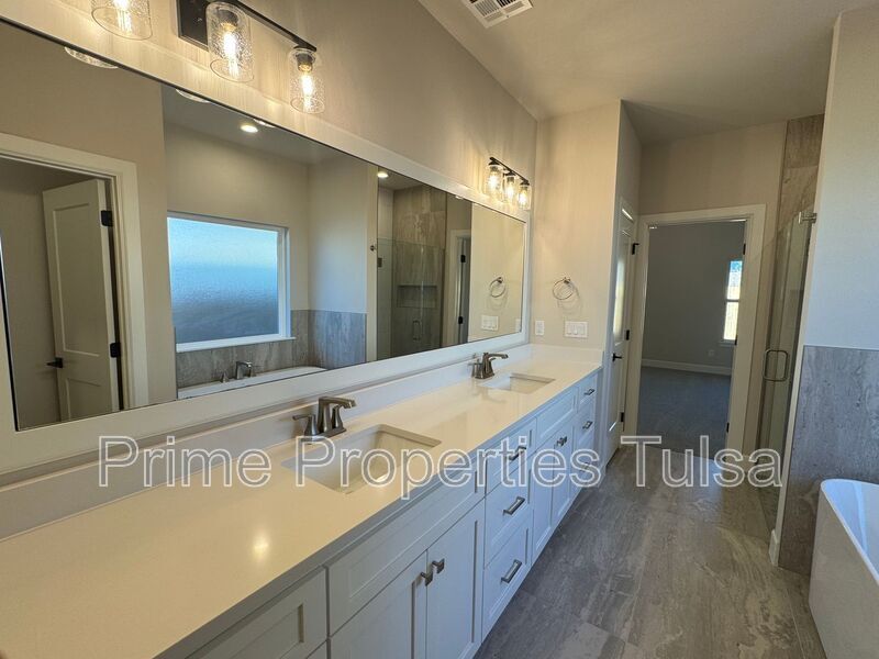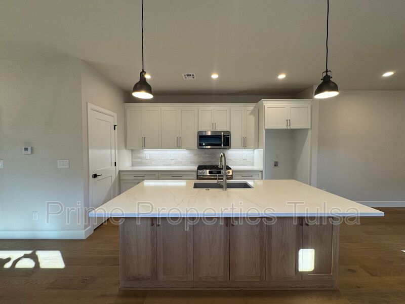 Stylish new construction community only a couple miles from The Rose District and all it has to offer, and much more nearby. Excellent floor plans! All of the public areas of the main level are floored with pre-finished wood planking. All ceilings are 9' making the rooms feel more open and friendly, wonderful Great Room with gas fireplace. Beautiful Kitchen with built-in stainless steel appliances, soft close drawers and cabinet doors, quartz counters and wood wrapped island with cabinets in front, and more on the sink side, and pendant lights above and a roomy walk-in pantry. Primary Suite with tray ceiling and a private bath with walk-in shower and built-in shelves. Separate soaker tub with large occluded window for natural light and privacy. Large walk-in closet with plenty of storage space. 2nd level has a large game room with a vaulted ceiling and 2 large bedrooms split by a wonderful Pullman bath. Tankless water heater. Blinds and a sprinkler system is included! Broken Arrow Schools. Please call Bob at to schedule a showing. Tenant responsible for refrigerator, washer and dryer.