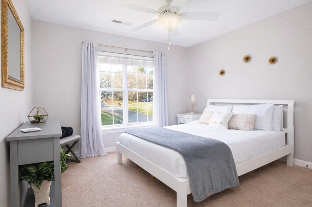 The advertised rate of $9,486/month is the lowest available price, based on a 1 month(s) stay with a move-in date of April 2, 2026. Rates vary depending on the duration of stay, season, and other parameters. For exact pricing and additional pricing components, please visit our website and enter your desired move-in and move-out dates. The rate is applicable when billed upfront; it can be higher if billed in multiple payments. Experience the charm of Charlotte in this inviting home, perfect for couples, business travelers, and families. Enjoy your morning coffee on the back deck, surrounded by a private, wooded backyard. Located just 15 minutes from Carowinds Amusement and Waterpark, this property offers a tranquil retreat after a day of exploring the city. With five spacious bedrooms, including two king-size and three queen-size beds, and 2.5 bathrooms, this home comfortably accommodates up to 12 guests. The open-concept living room features a flat-screen Smart TV, and the large kitchen is equipped with stainless steel appliances. The fully equipped kitchen boasts stainless steel appliances, cooking basics, and a Keurig and drip coffee maker. The dining area offers seating for up to 13 guests, making it ideal for gatherings. Relax in the living room on the sectional sofa while enjoying your favorite shows on the big screen Smart TV. The home also includes an in-unit washer and dryer, central heating and air conditioning, and complimentary toiletries. Free parking is available with space for two vehicles in the garage and two in the driveway, along with overnight street parking. If you're traveling with a pet, an additional fee of $300 per pet per stay applies. This property is ideally located near many of Charlotte's attractions, restaurants, shopping centers, and the expressway. The neighborhood is safe and family-friendly, making it a popular choice for travelers. This property enforces a strict no-smoking or vaping policy inside the house or garage, with a $500 fine for violations. Smoking is permitted outside in the backyard only. Quiet hours are from 9 PM to 8 AM to ensure a peaceful environment for all guests. The property is equipped with Ring cameras for security, monitoring the front, backyard, and driveway. Corporate and social events are allowed only with pre-approval, and additional fees may apply. No more than 12 guests are allowed unless pre-approved, and no unregistered guests are permitted. The fireplace is not available for use, and parking or driving on the lawn is prohibited to prevent damage. The office space includes a desk and office chair, providing a comfortable environment for remote work. A queen-size air mattress is also available in the office for additional sleeping arrangements. For extended stays longer than 10 nights, full housekeeping service is required once per week. Guests can choose to perform this cleaning themselves or hire a professional cleaning team for an additional fee. Failure to comply may result in additional charges. [SI]