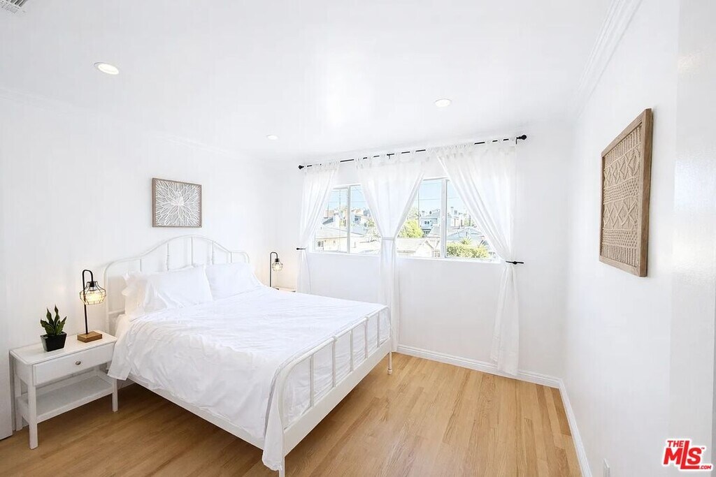 Gorgeous & bright upstairs 2 Bed/1 Bath at 20th & California Newly renovated kitchen with Calacatta marble countertops & glass front cabinetry Excellent cabinet storage All stainless steel appliances with gas range, dishwasher, and double sink Breakfast bar seating Upstairs corner apartment with no one above Central air and heat Pool Tumbled marble bathroom with shower tub combo French doors in living room open to private balcony West facing with lots of natural light and amazing closet space Washer/Dryer in unit One parking space included in covered lot Recessed lighting in every room Hardwood floors throughout Gated property Just four blocks to both Whole Foods and Trader Joe's Close distance to all the shops, cafes, and restaurants in Santa Monica. Water/sewer/trash included. Tenant responsible for gas & electricity. First month's rent + security deposit due on signing. 1 yr lease. Pet friendly. No smoking. MLS# 26654819