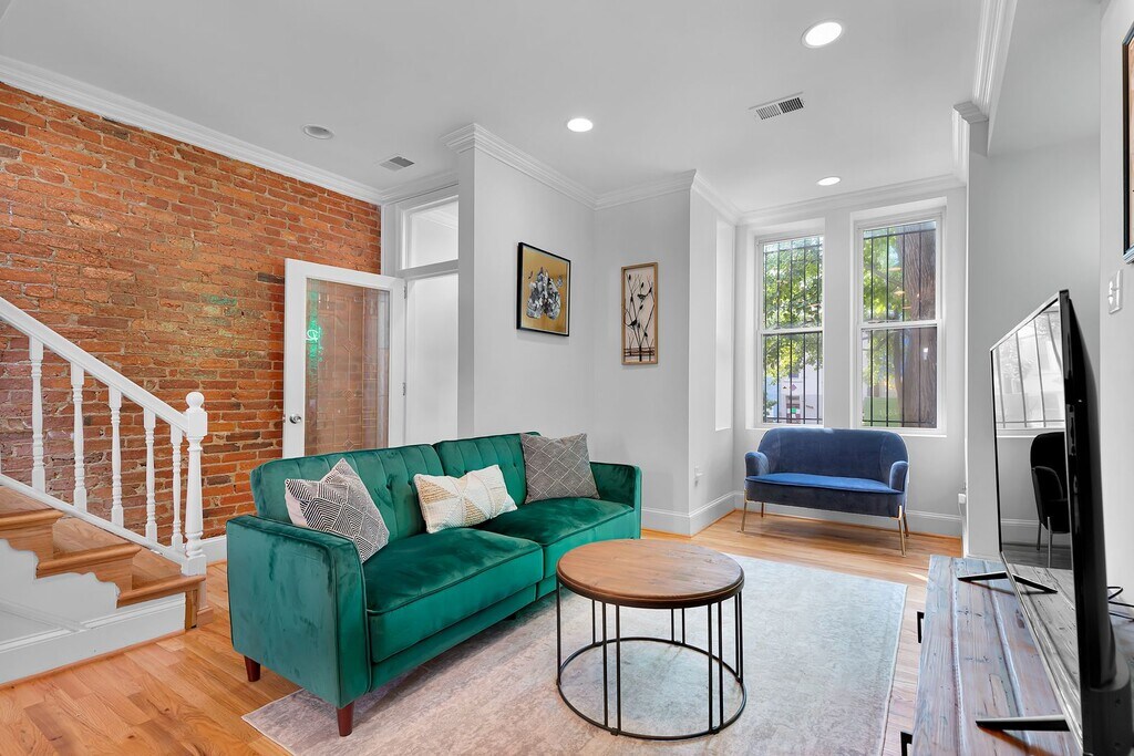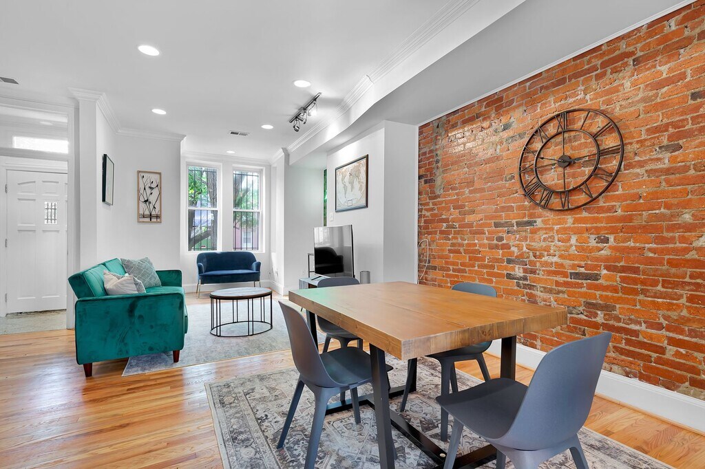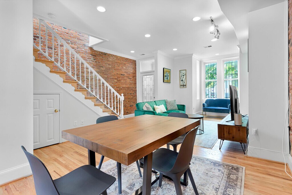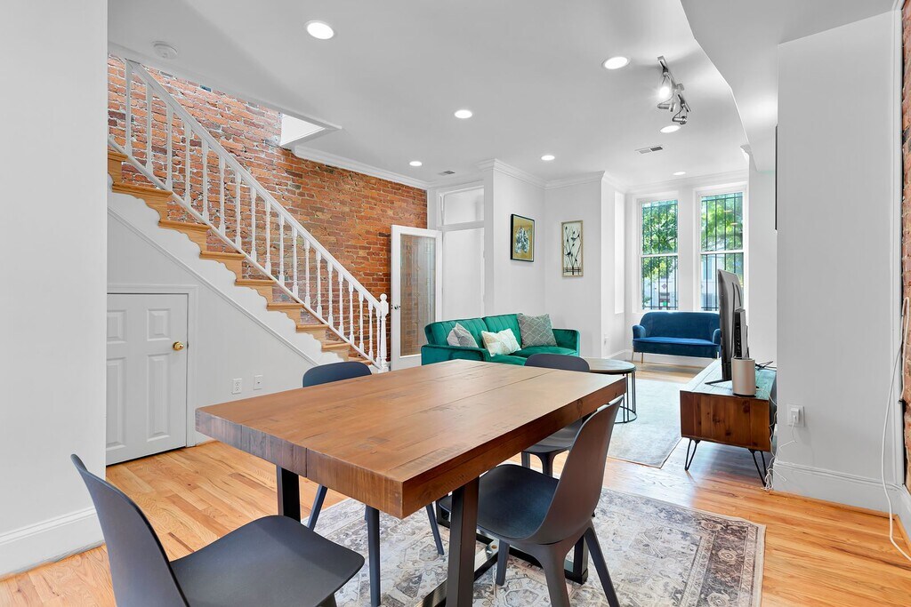 Available November 1, 2025. Beautiful, exposed brick single family house steps away from H St. Corridor and Union Market DC Front and rear outdoor space to enjoy the sounds and sights of Washington DC. Enjoy the walkability to many restaurants, coffee shops, and the infamous Union Market Summer Movie Night every other Friday night. 3 Bedrooms/ 1.5 Bathrooms over 2 levels with a special outdoor patio off of the kitchen area, perfect for grilling on a summer evening or having your morning coffee. Kitchen has been completely remodeled with solid surface white counter tops, blue modern cabinets with brass sink faucets and handle pulls, beautiful renovation. The property also has beautiful, exposed brick, smart locks, new appliances, hardwood floors, and newer windows. Window treatments just installed throughout and convey with the property. Come enjoy Washington DC in the 1037 5th St. NE Oasis.