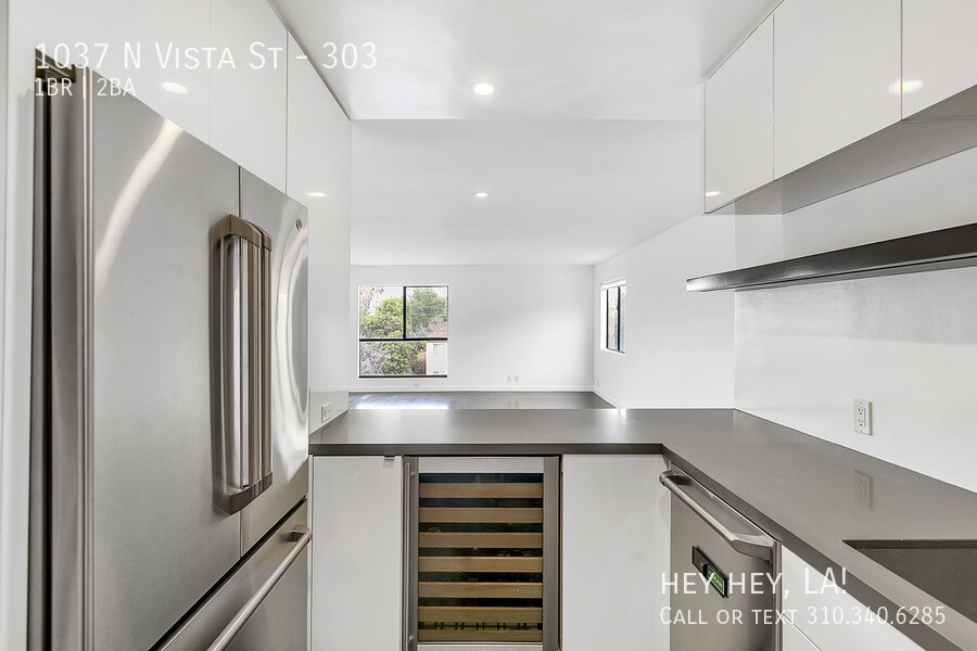 This remodeled, one bedroom, top floor condo features over 1050 SF and is conveniently located just blocks to Poinsettia Recreation Center, Plummer Park, Formosa Park, Trader Joe's, Whole Foods, Breakfast by Salt’s Cure, Harlowe, Las Perlas, Bar Lubitsch, the Target shopping center at Santa Monica and La Brea, and endless boutique shopping on Melrose! We guarantee you won’t find another condo like this for rent! After entering this secure building, taking the elevator to the top floor and walking to the very end of the hallway, you will enter this corner unit through a set of double doors. Fresh bright paint contrasted against dark wood floors with large open rooms and an extra wide hallway all lend to the sleek modern esthetic. To the left as you enter you will find a spacious laundry room with full sized in-unit washer & dryer and storage cabinetry above. Also off the hallway you have access to a half bathroom and linen closet before reaching the pocket door into the kitchen. Gray quartz countertops are paired with an open shelf and upper and lower soft close cabinetry. Stainless steel appliances include refrigerator, gas stove, built-in microwave, dishwasher and wine fridge! With a pass through over the counter to the spacious living room, additional storage cabinetry can be found on the opposite facing of the cabinetry and maximizes the space beautifully. Oversized windows and a sliding glass door to your private balcony bring in an abundance of natural light. Fit for a king, and then some, the bedroom features a sizable wardrobe closet, sliding glass door to balcony and ensuite bathroom with dual sinks and deep luxurious soaking bathtub with a glass enclosure. When I say deep I mean DEEP - get your step stool because this tub is unreal! Condo living is distinctly different from apartment living and it can be felt from the moment you walk into this home. Surely this one won’t last long so contact us today for a tour! Minimum One Year Lease. Owner pays for water, sewer and trash! Tenant pays remaining utilities including electric, gas, cable, internet and rental insurance. Cats and small dogs will be considered with an additional deposit, $300/cat and $500/dog. Central Heat & Air Conditioning. One assigned parking space in the gated garage included.. Video Tour: No risk to apply. $40 application fee for credit report will not be due until your application and supporting documents are reviewed by the owner and it is confirmed that you meet the basic requirement of income equal to or more than 3x the rent, and solid credit above 650. To apply: